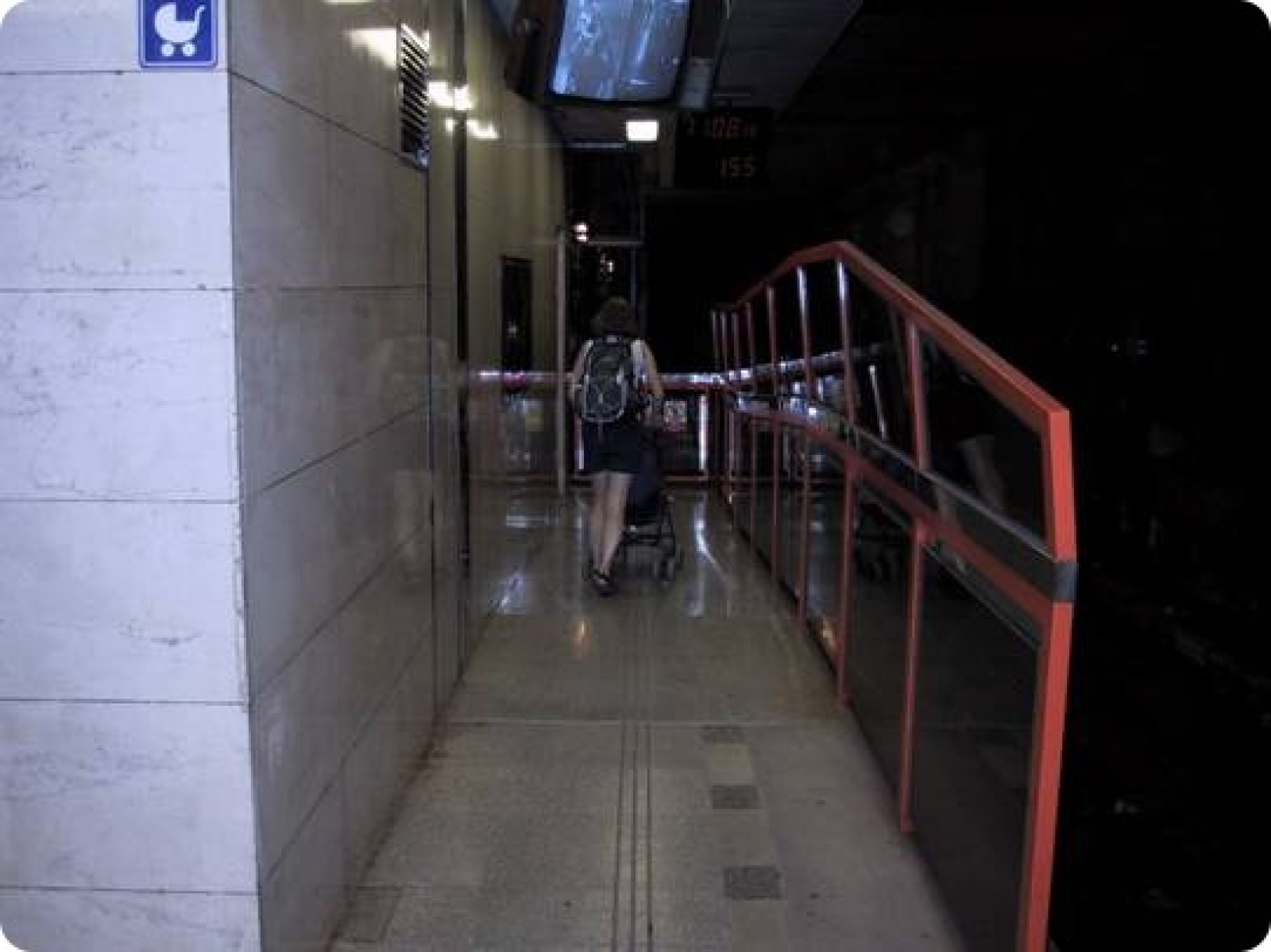 Výtah je na obou vstupech označen piktogramy a přístup k výtahu na nástupišti metra je znázorněn na informačních panelech.