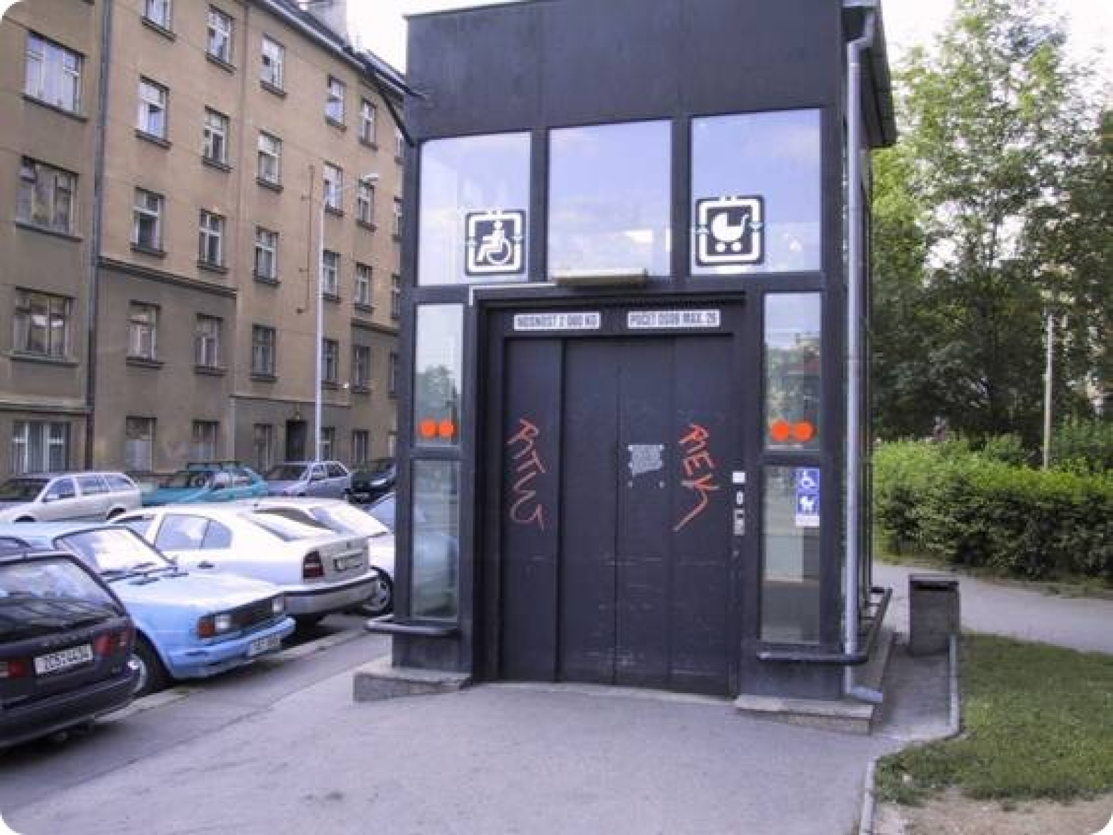 Výtah v blízkosti zastávky autobusů MHD na Evropské ulici ve směru z centra (OsV 053)