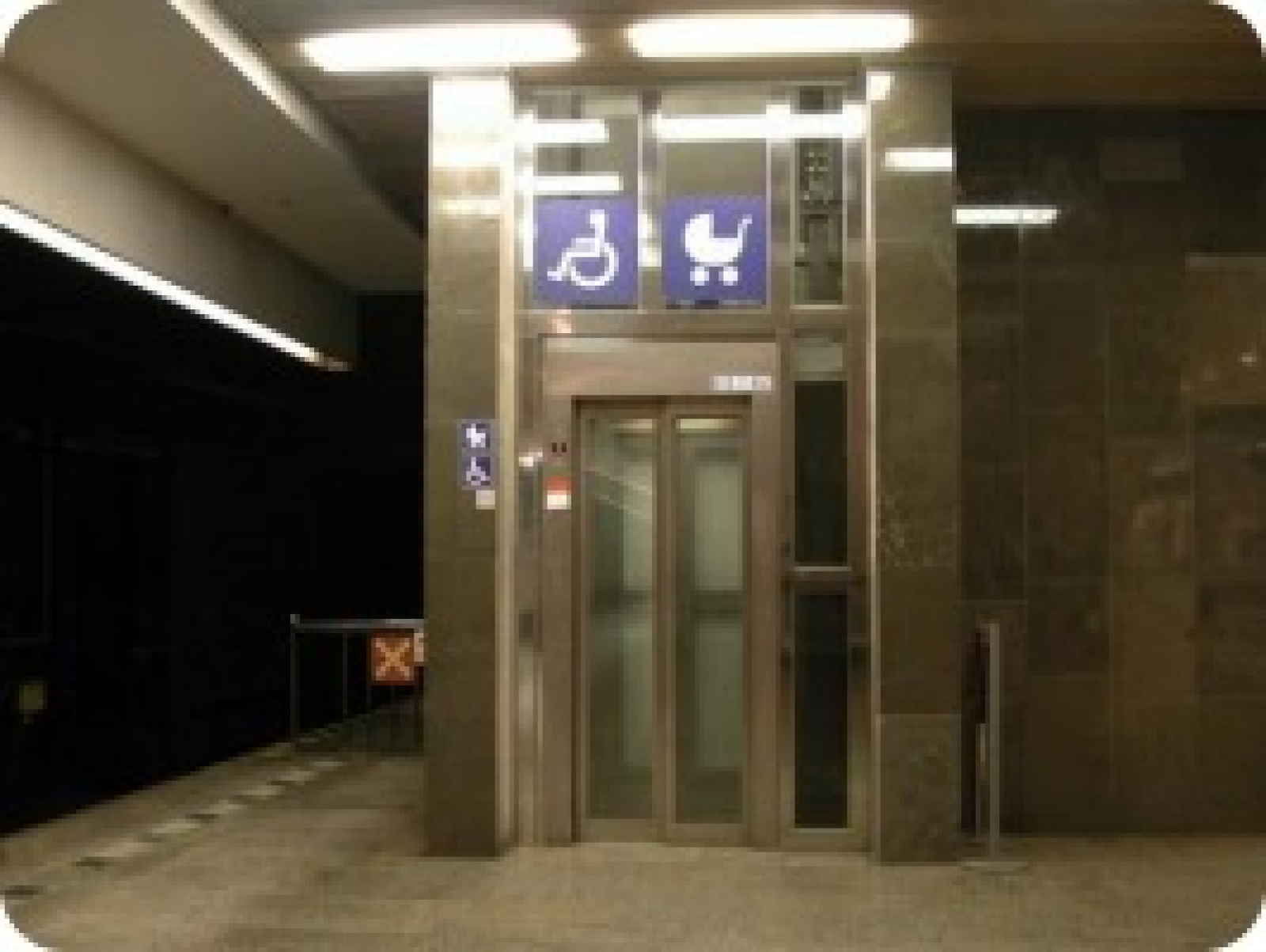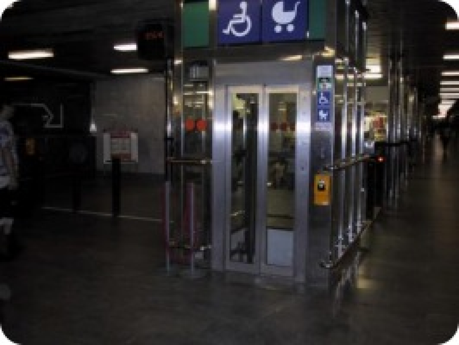 Výtahy jsou na obou vstupech označeny piktogramy a přístup k výtahům v prostorách podchodu, vestibulů a na nástupišti metra je znázorněn na informačních panelech.