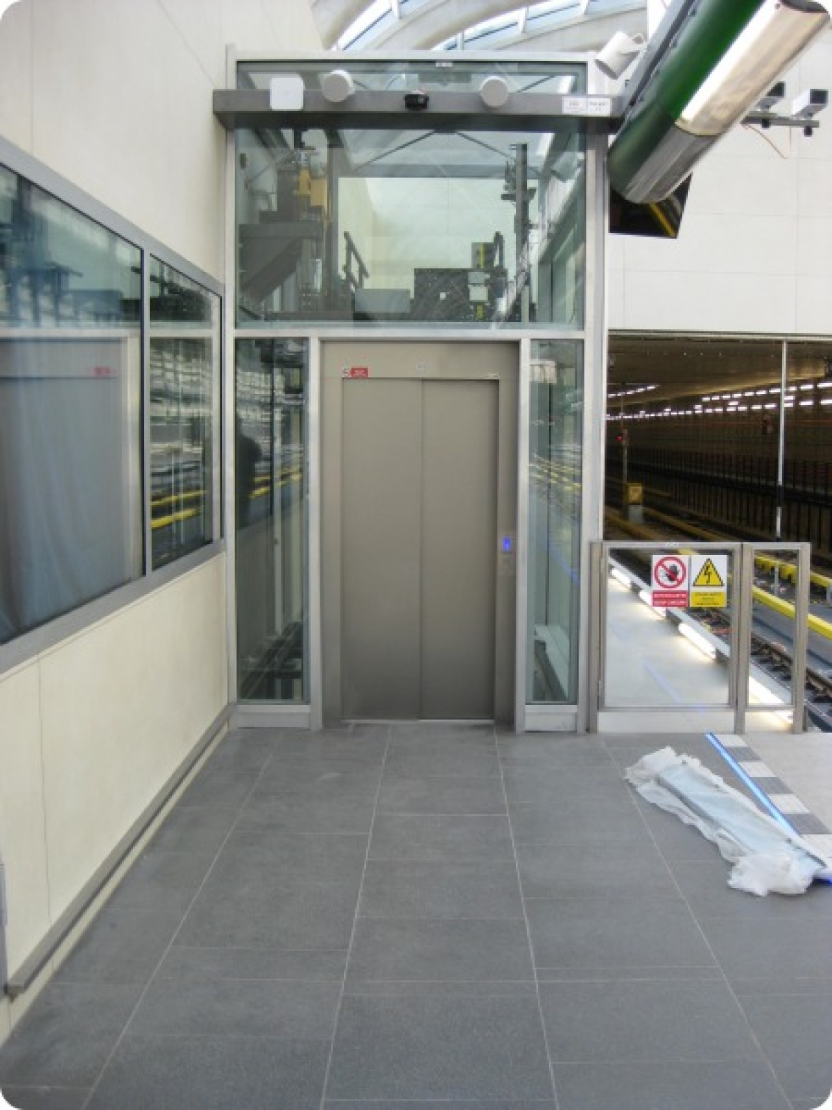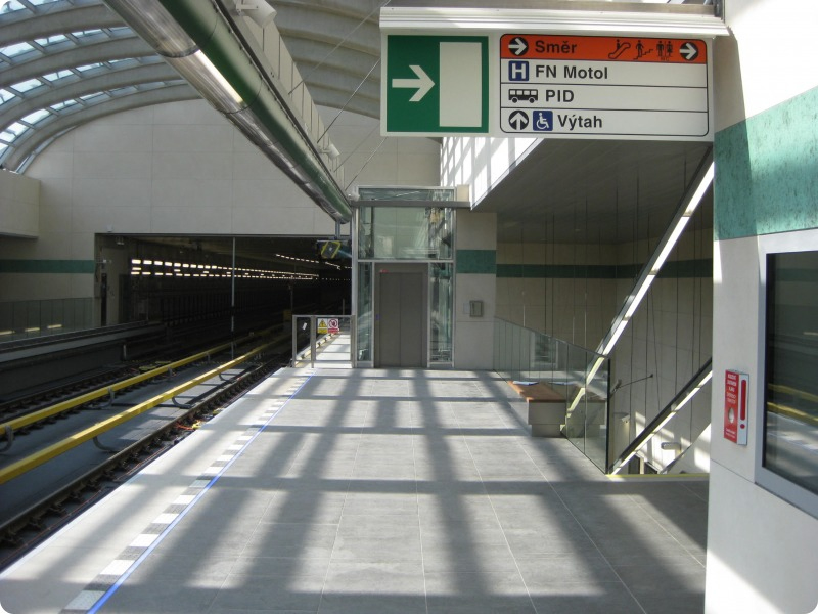 Vstup do výtahu č. 487 v úrovni nástupiště směrem do centra