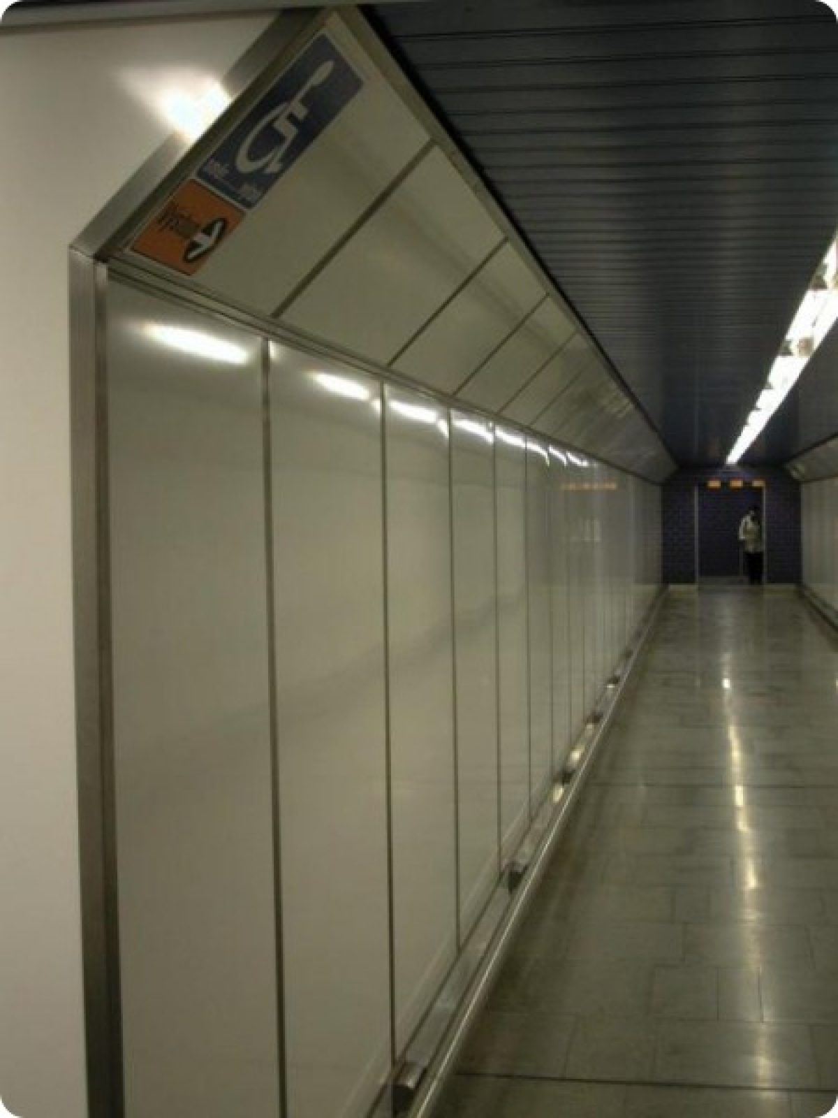 dolní nástupiště: Chodba délky cca 28 m, šíře 2500 mm.