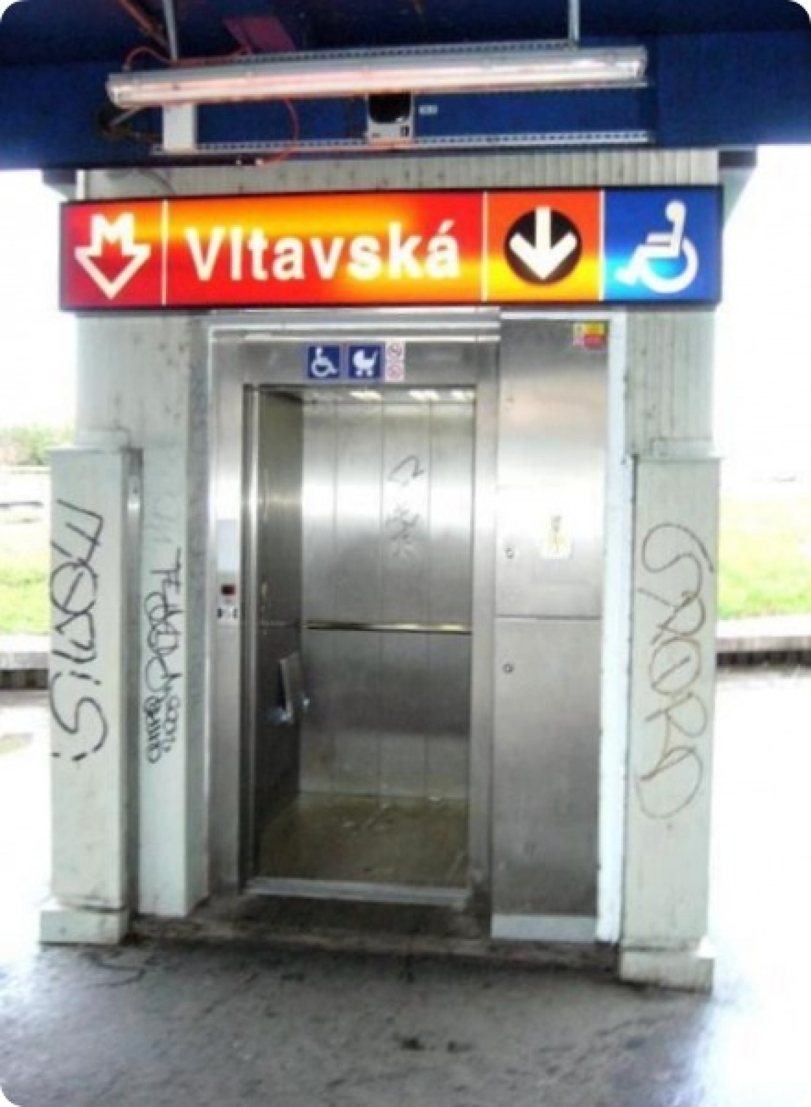 Osobní výtah ve stanici metra Vltavská – ulice