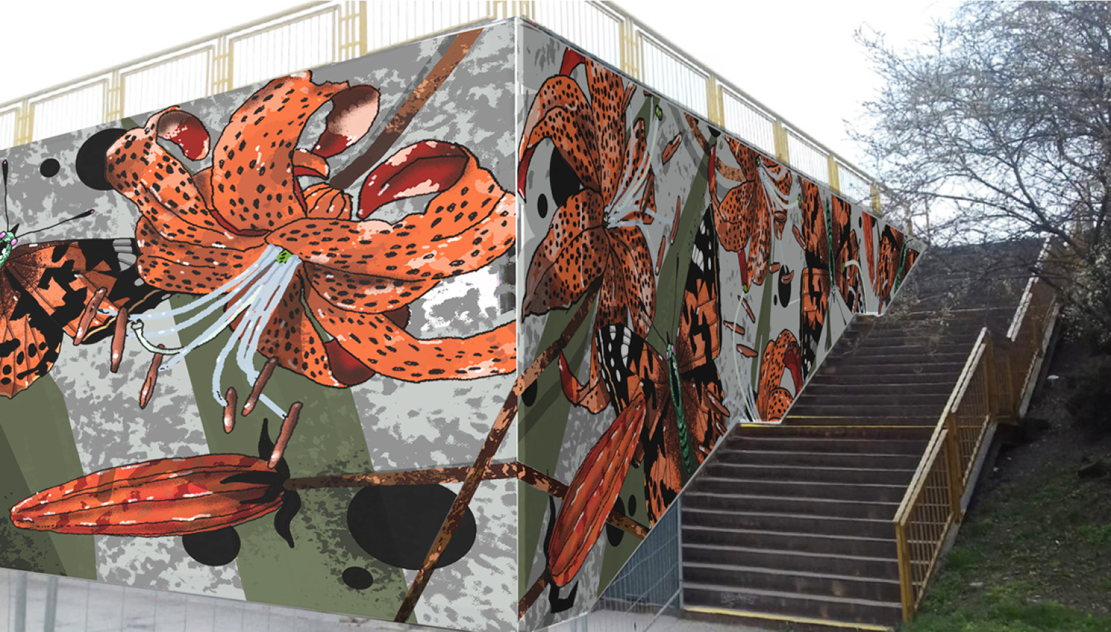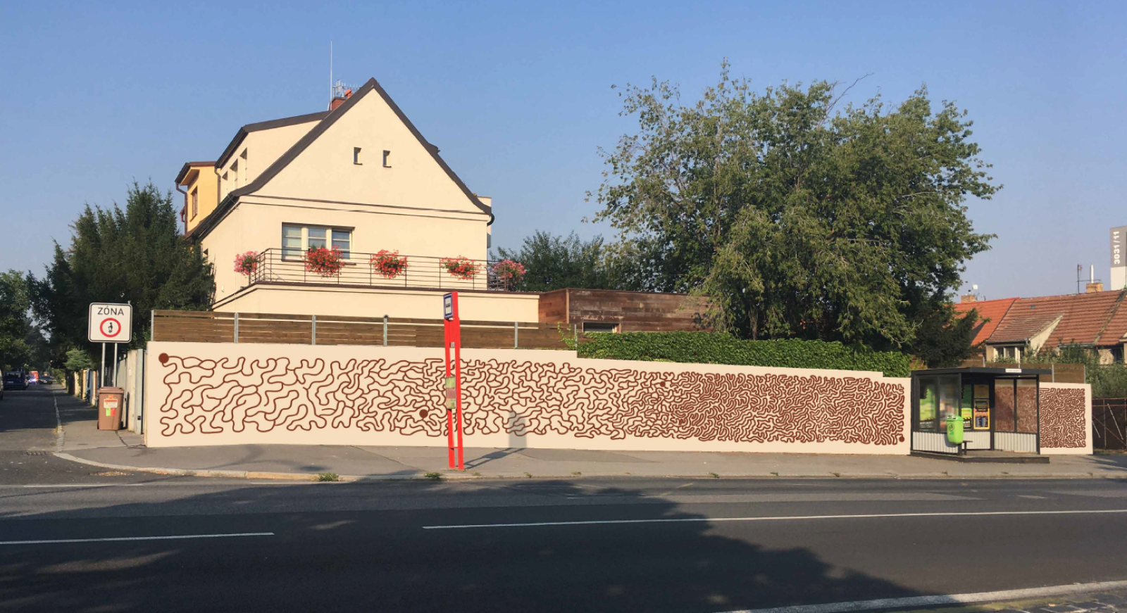 The building containing the emergency exit from the Opatov metro station is to be decorated with a new large mural entitled “Flora and Fauna” by the artist Ondřej Vyhnánek. His design was the winner in the online competition (public survey) conducted by the Prague Public Transit Company (DPP) and the City District of Prague 11.