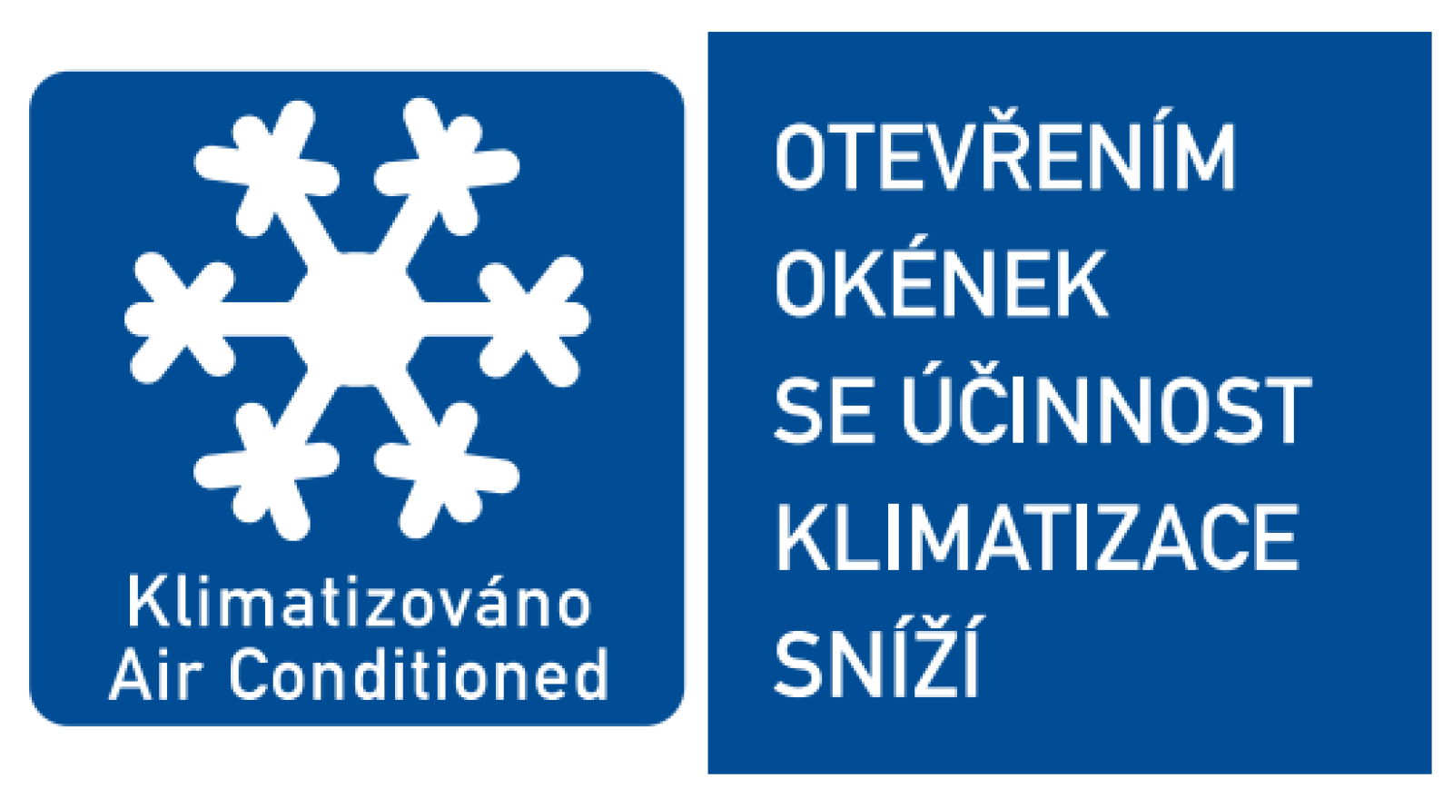 Otevřenými okny se účinek klimatizace snižuje. Proto je i ve vozech vybavených klimatizací upozornění.