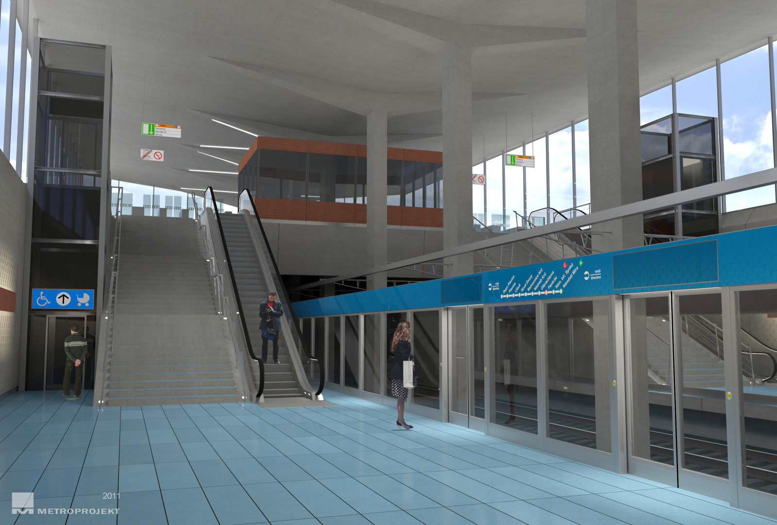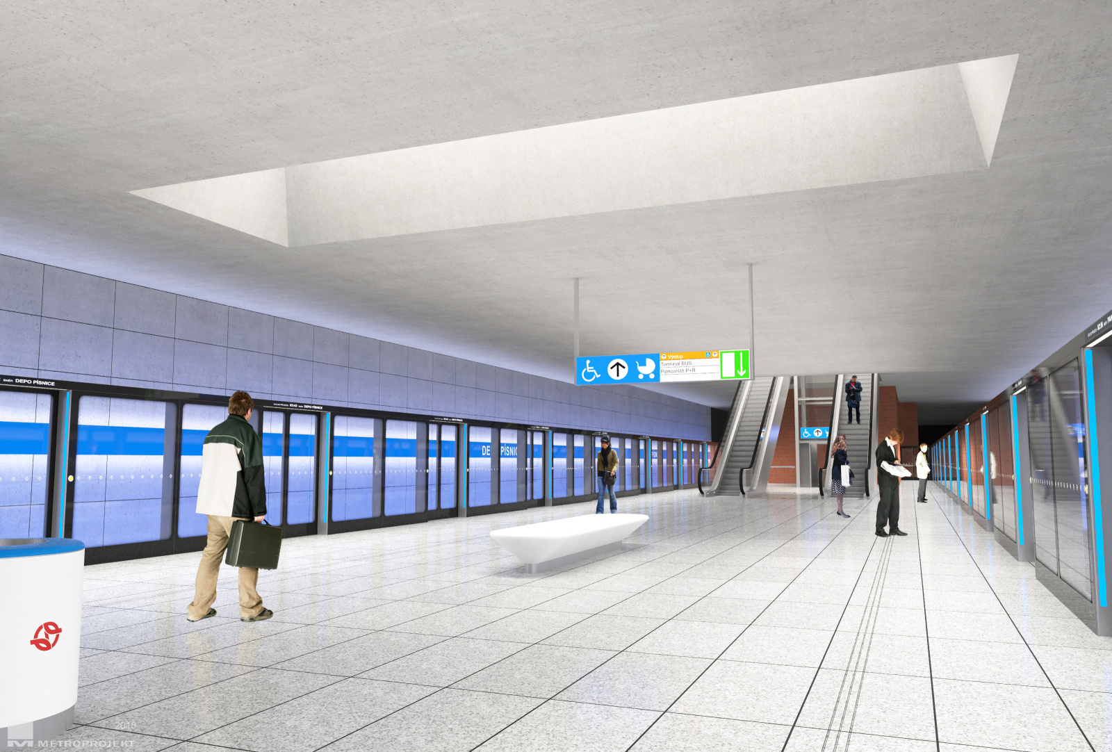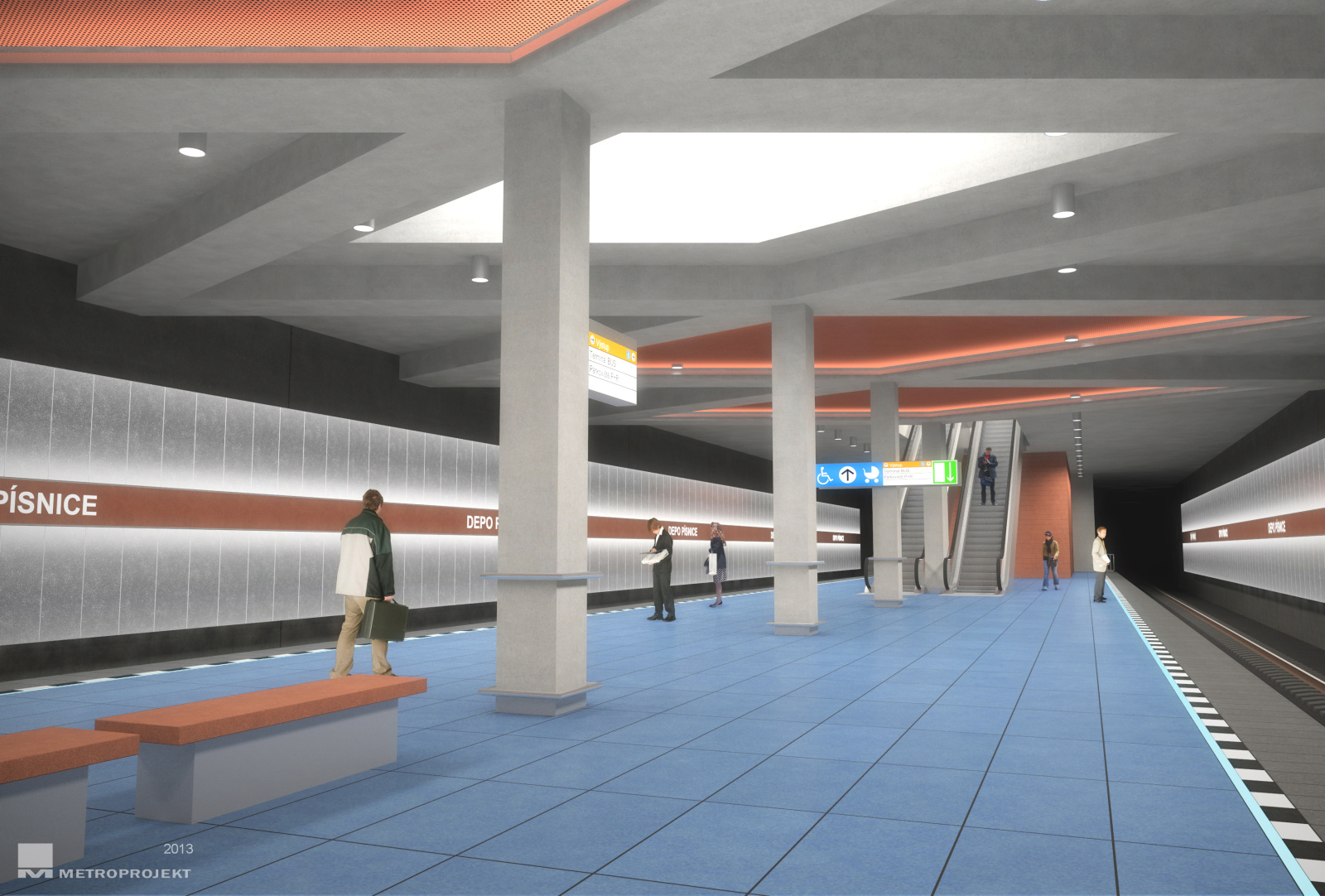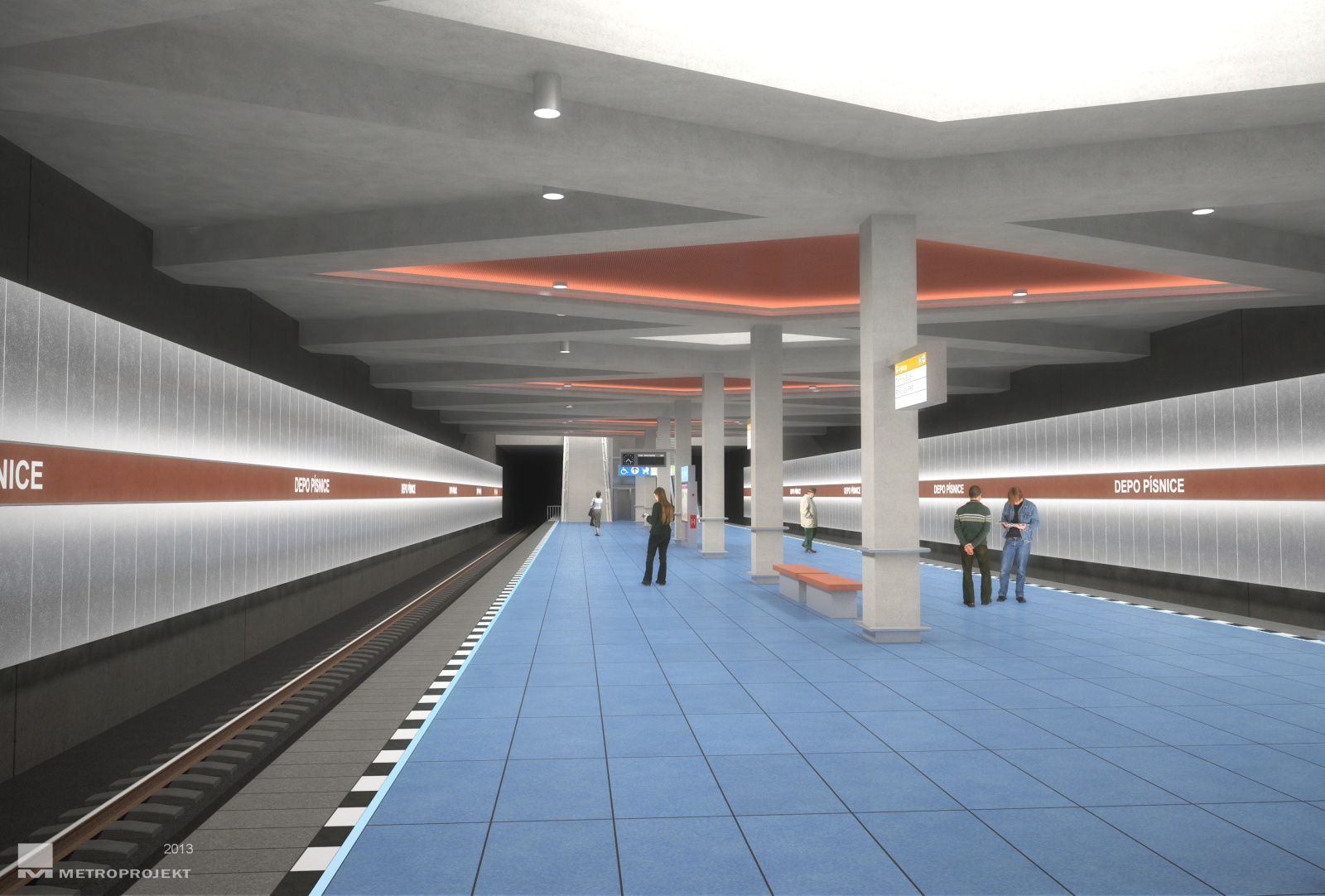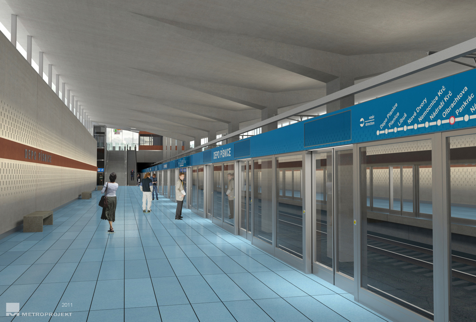 2011 - stanice Depo Písnice - pohled od eskalátorů na nástupiště