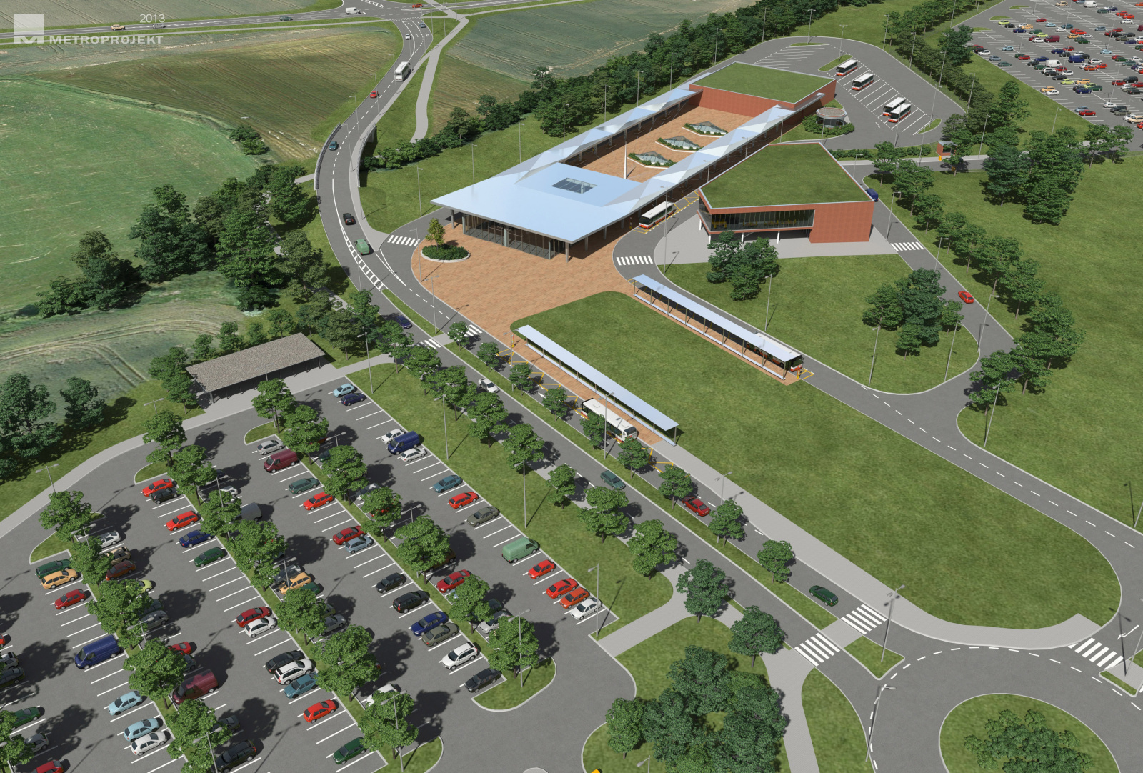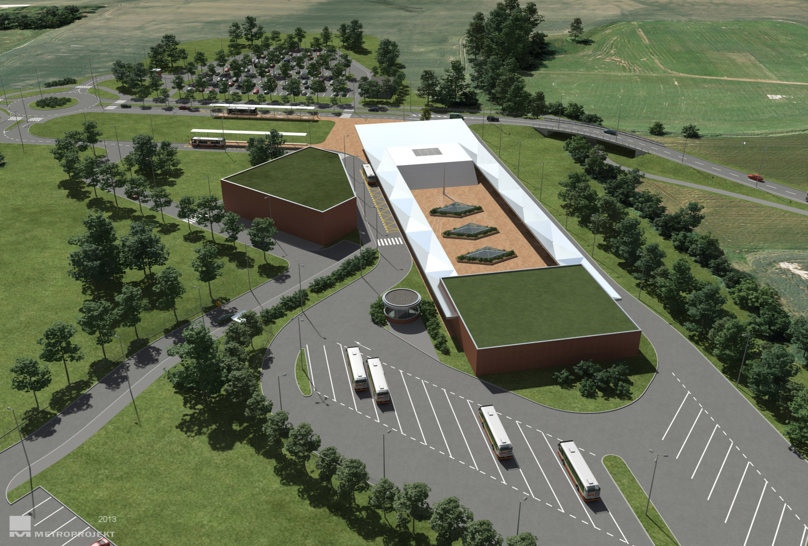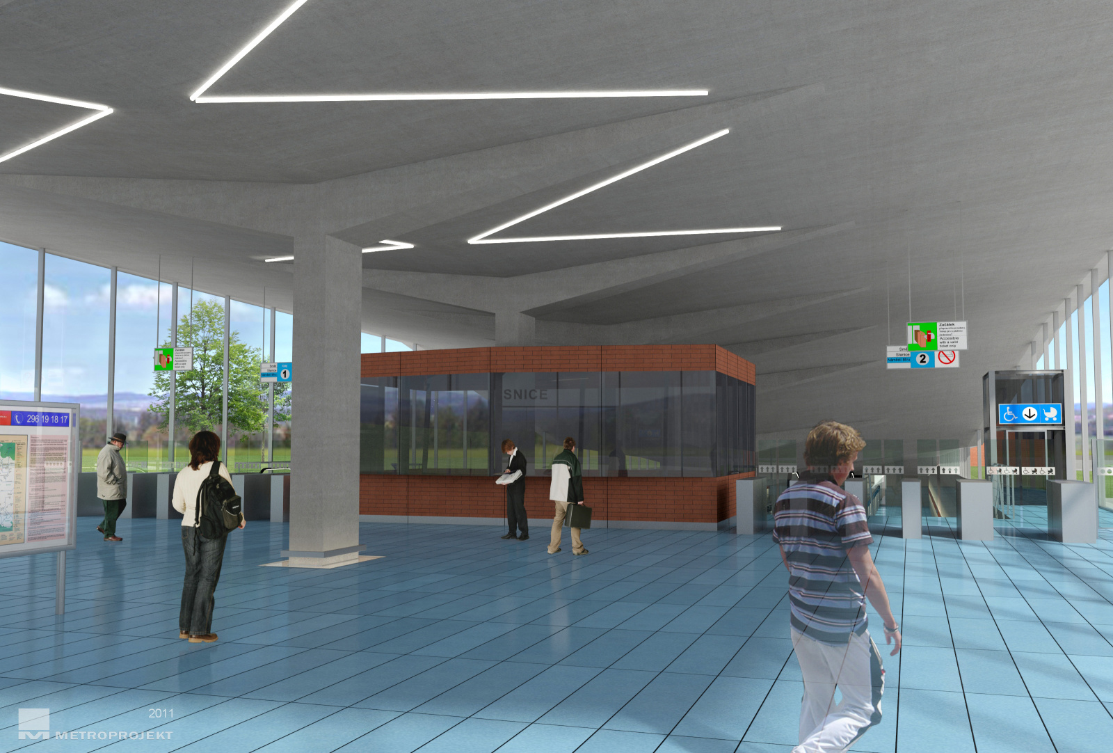2013 - stanice Depo Písnice - pohled na klidový prostor u vestibulu