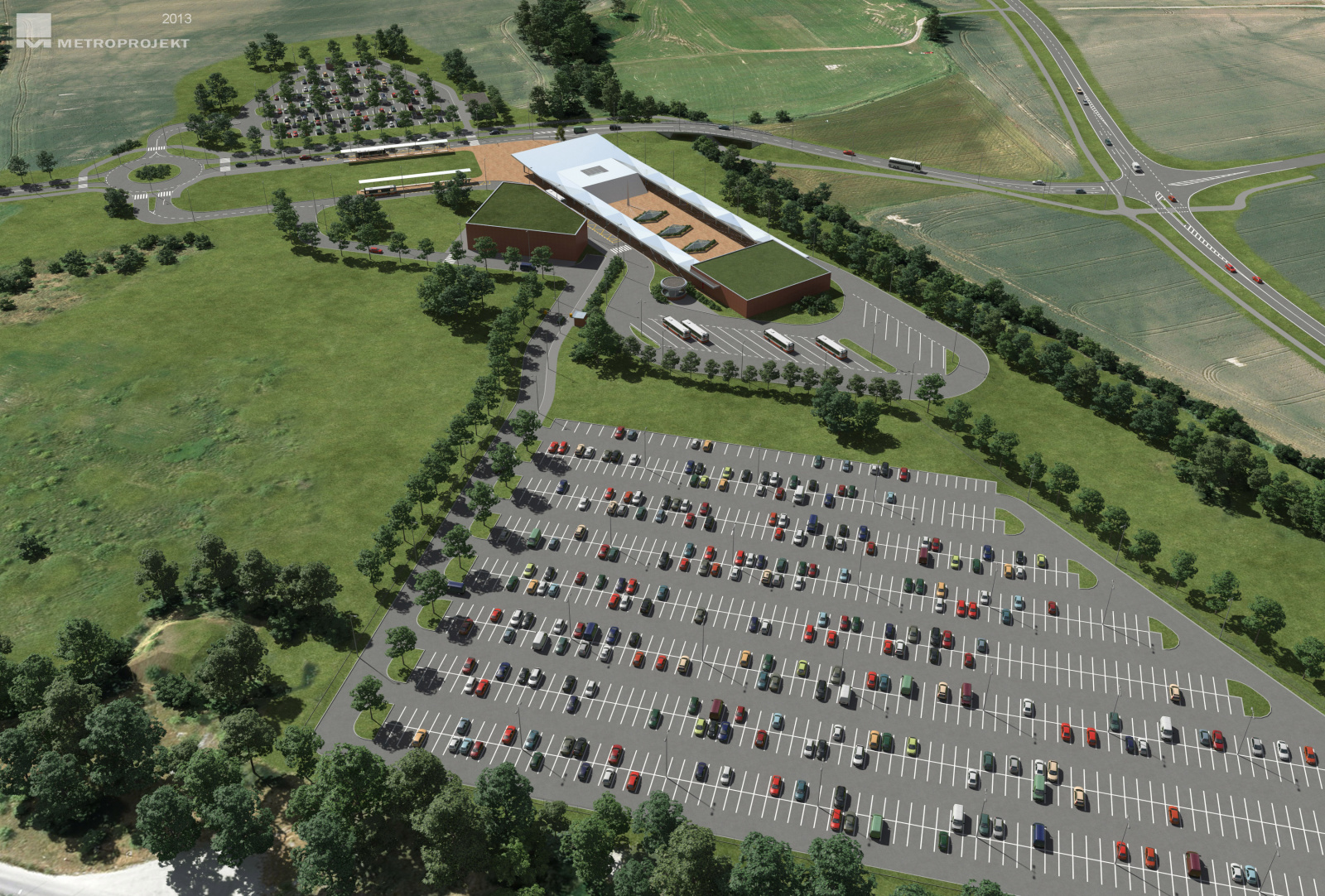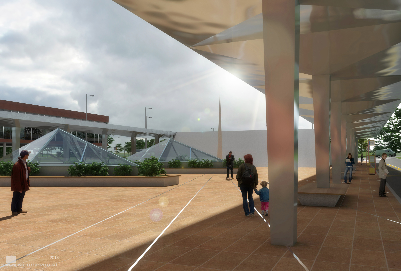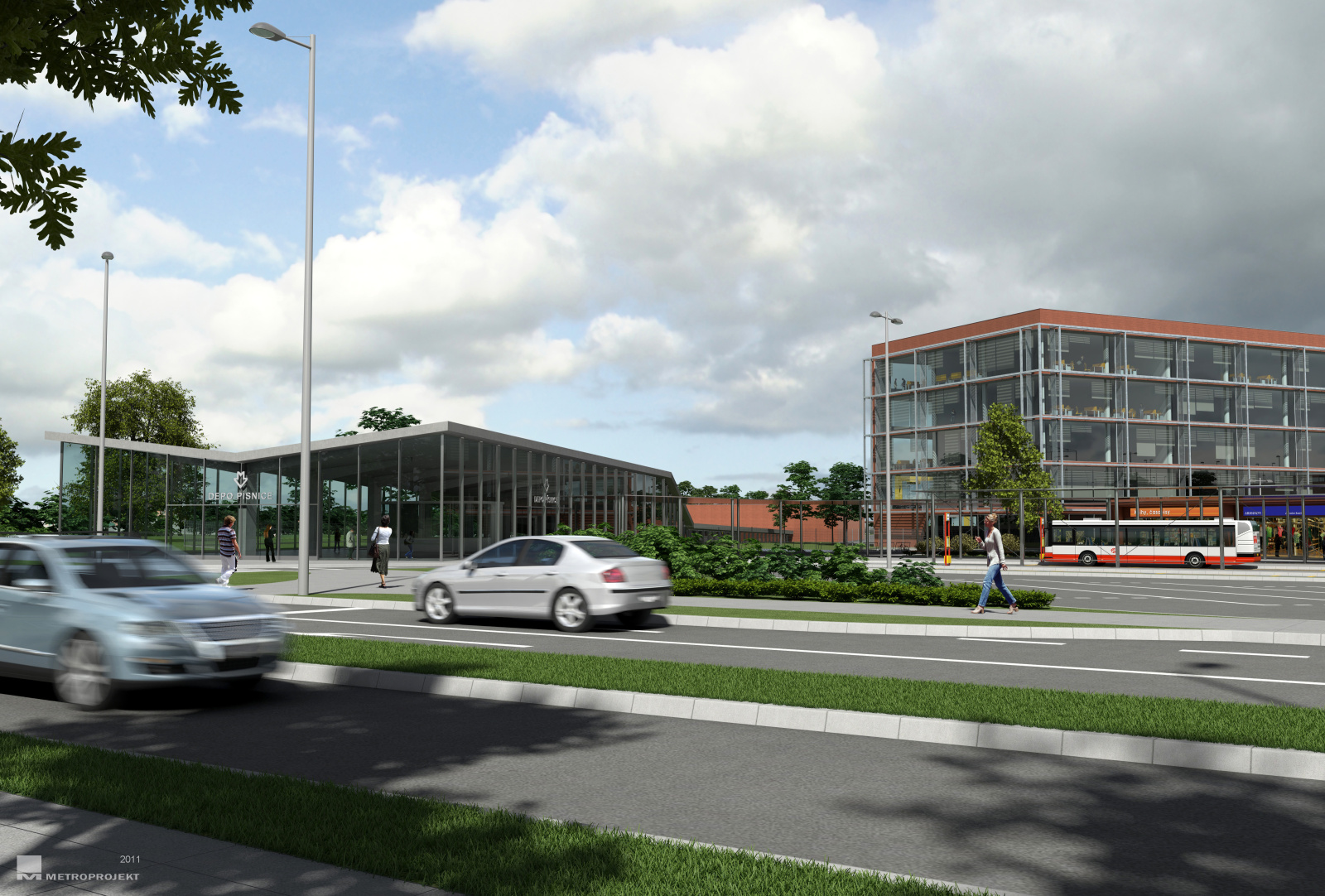 2013 - stanice Depo Písnice - pohled na klidový prostor u vestibulu