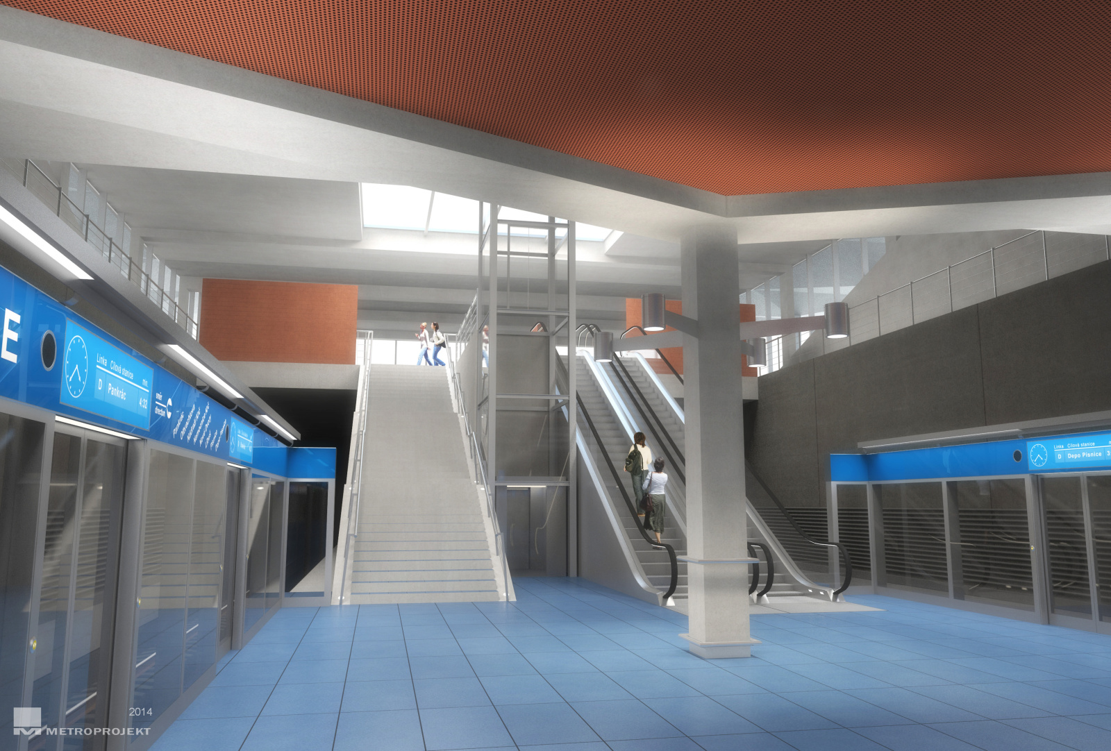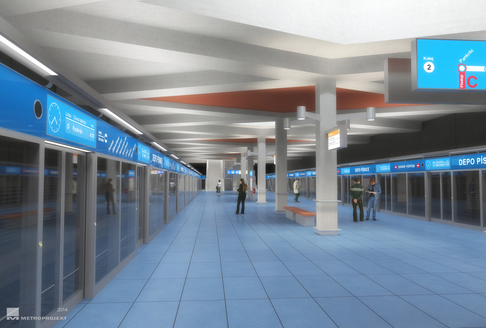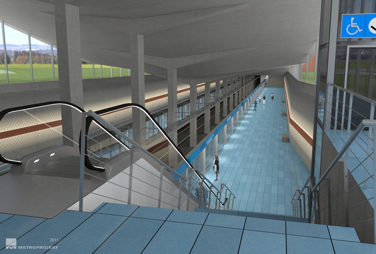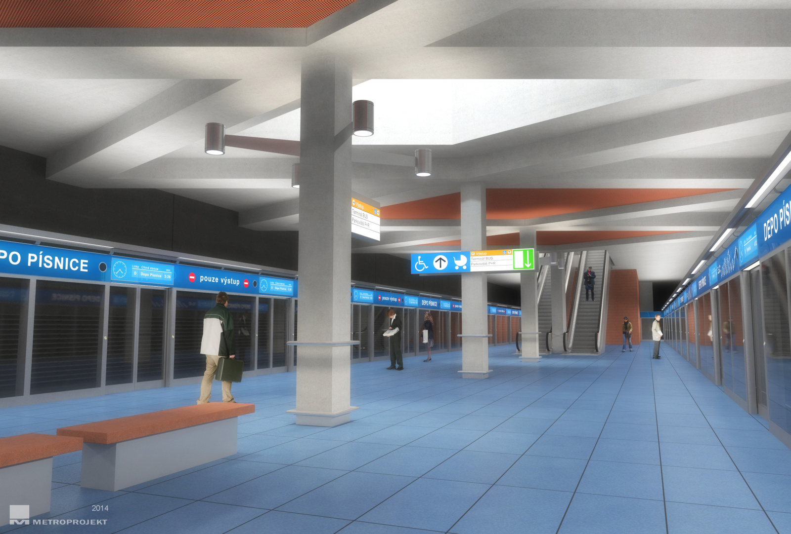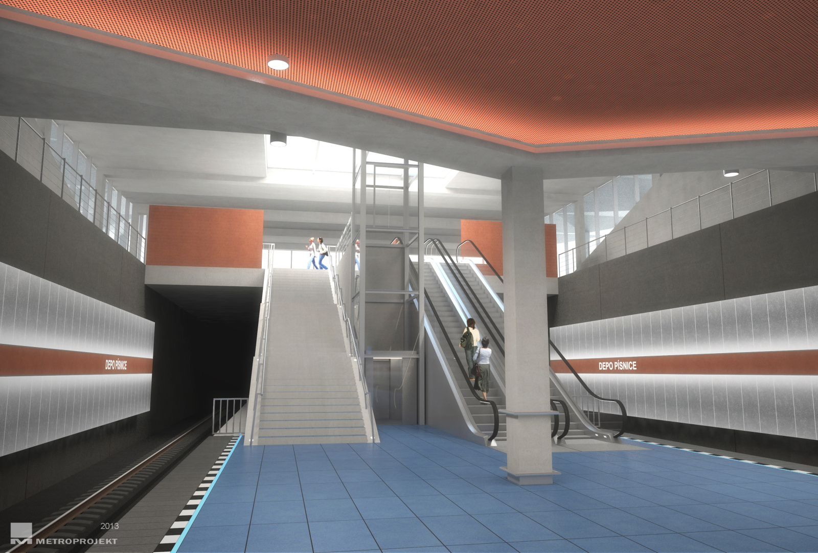 2014 - stanice Depo Písnice - pohled na výstup z nástupiště