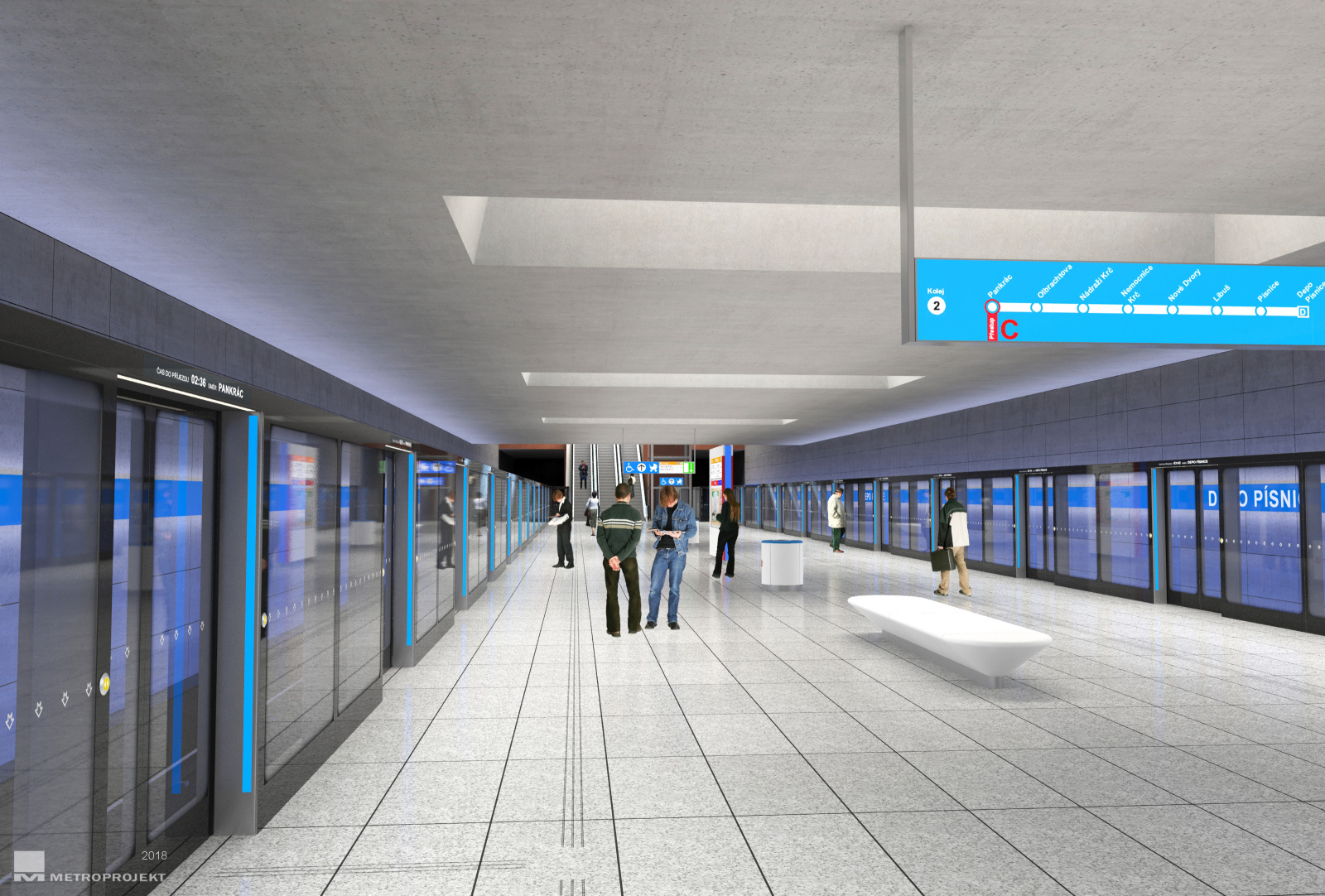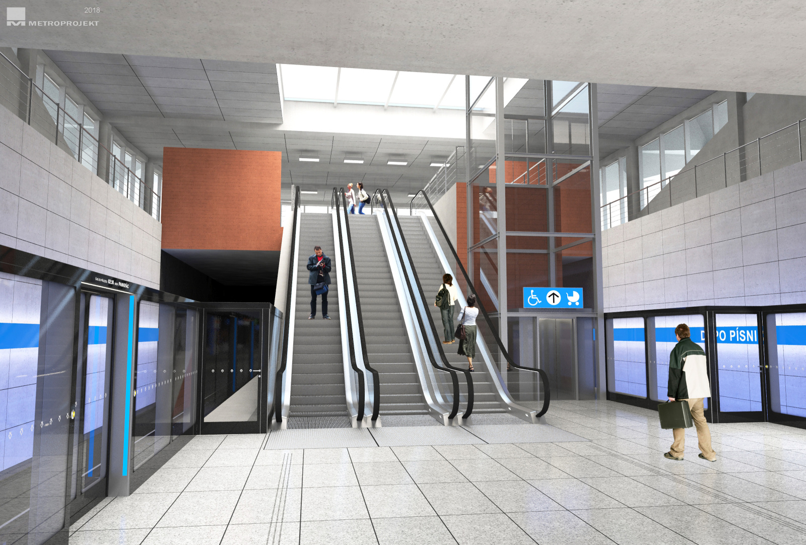 2018 - stanice Depo Písnice - pohled na výstup z nástupiště