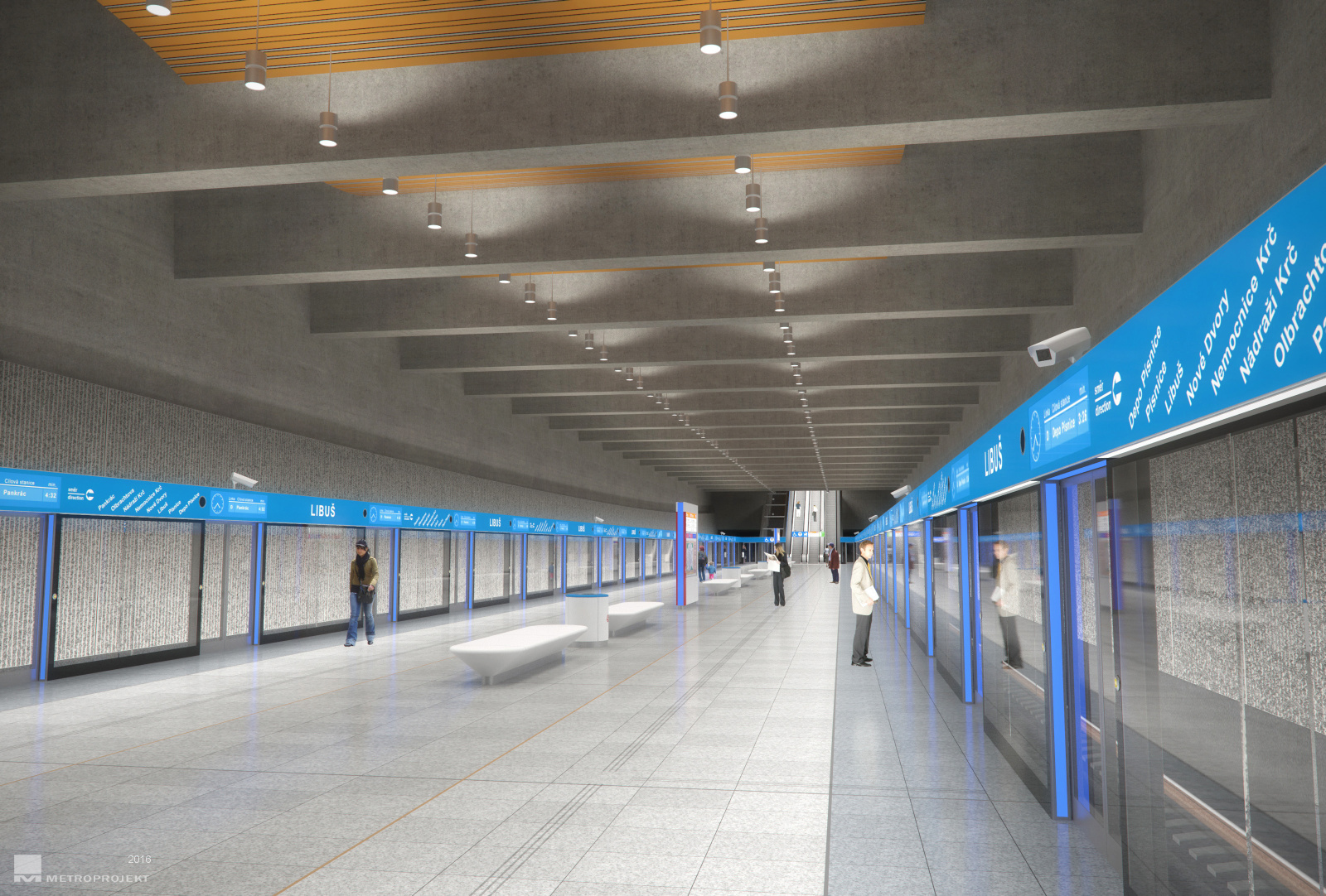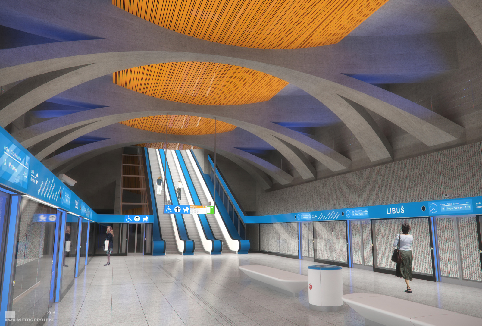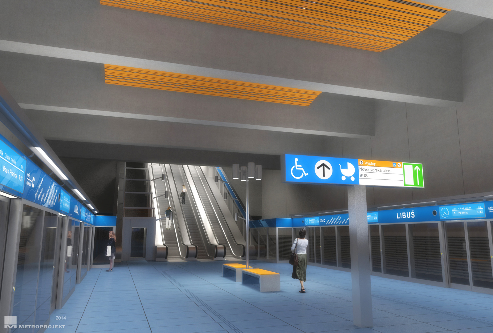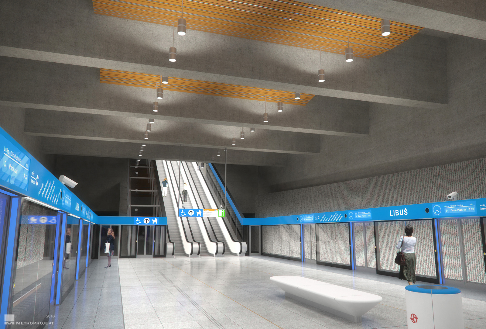 2016 - stanice Libuš - pohled z nástupiště k eskalátorům - varianta