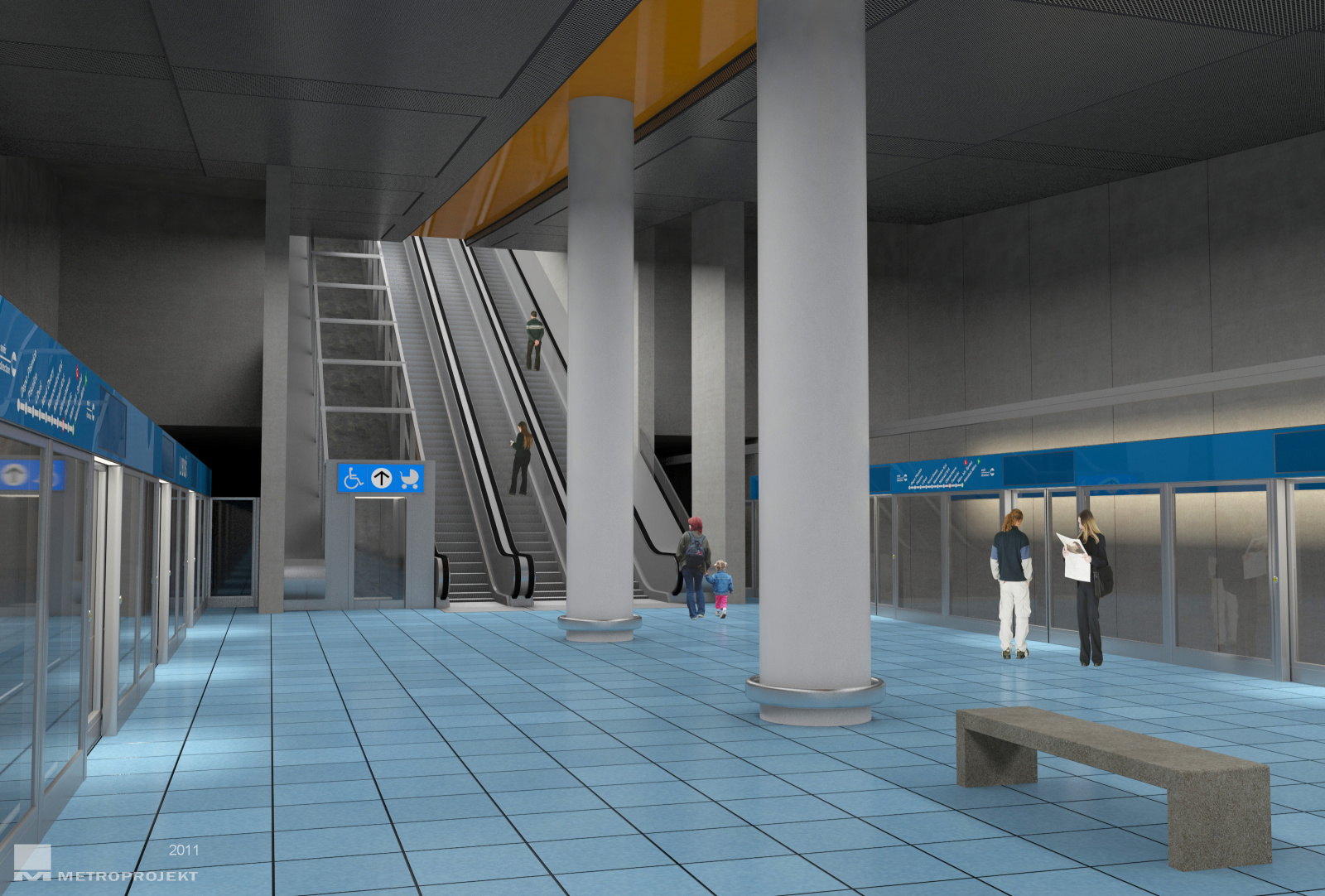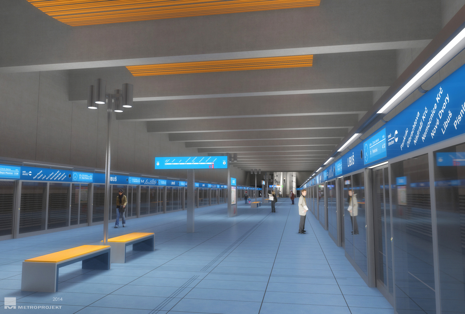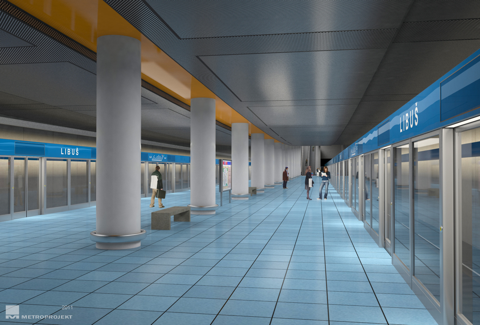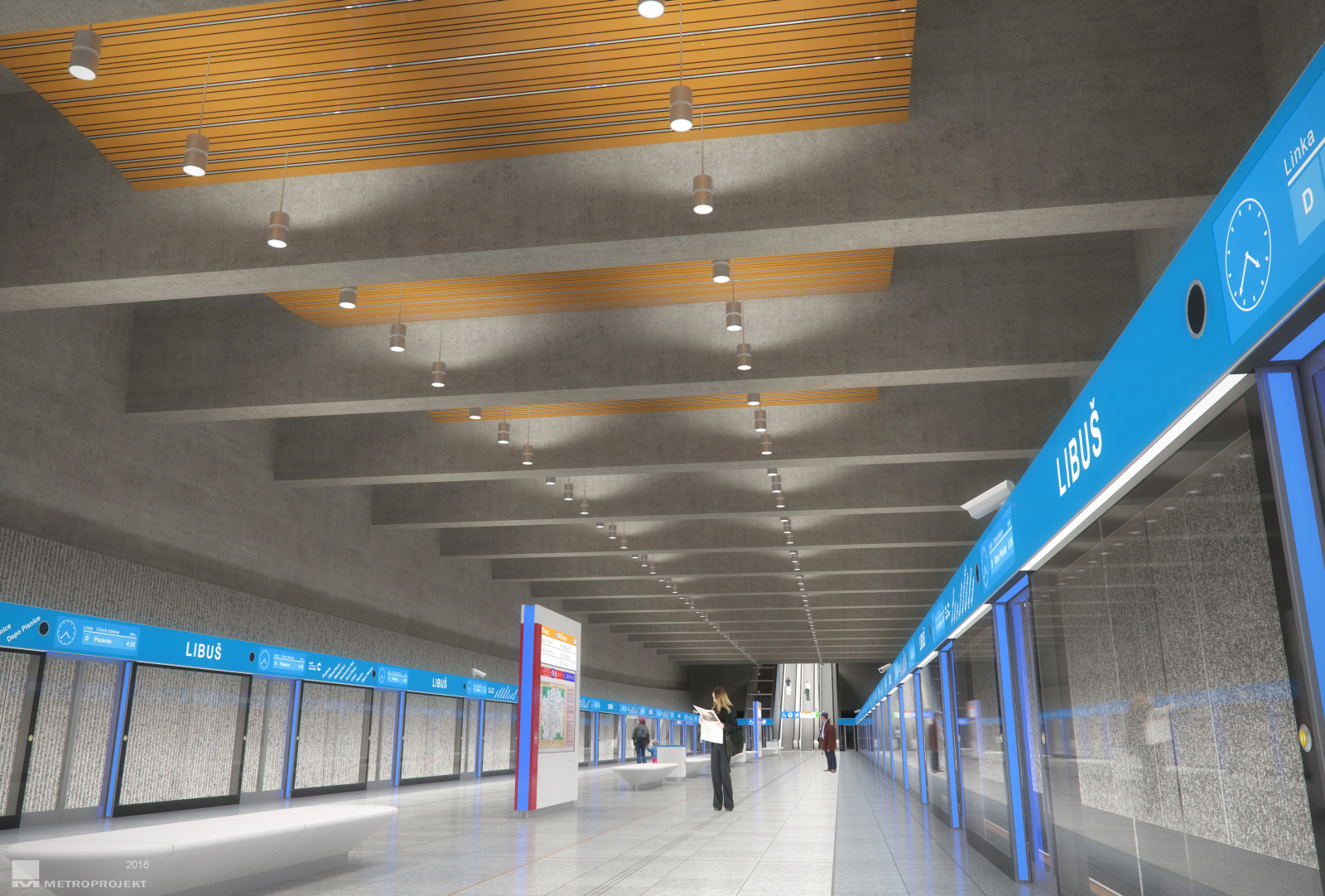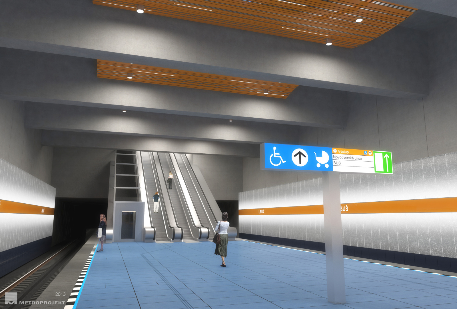 2016 - stanice Libuš - pohled z nástupiště k eskalátorům - varianta