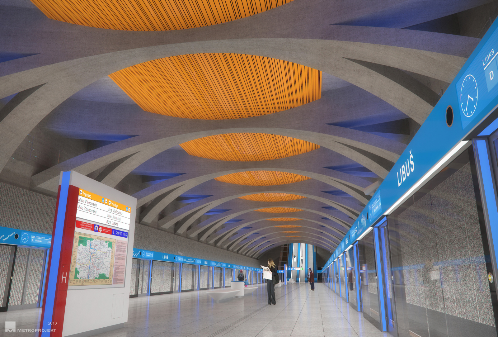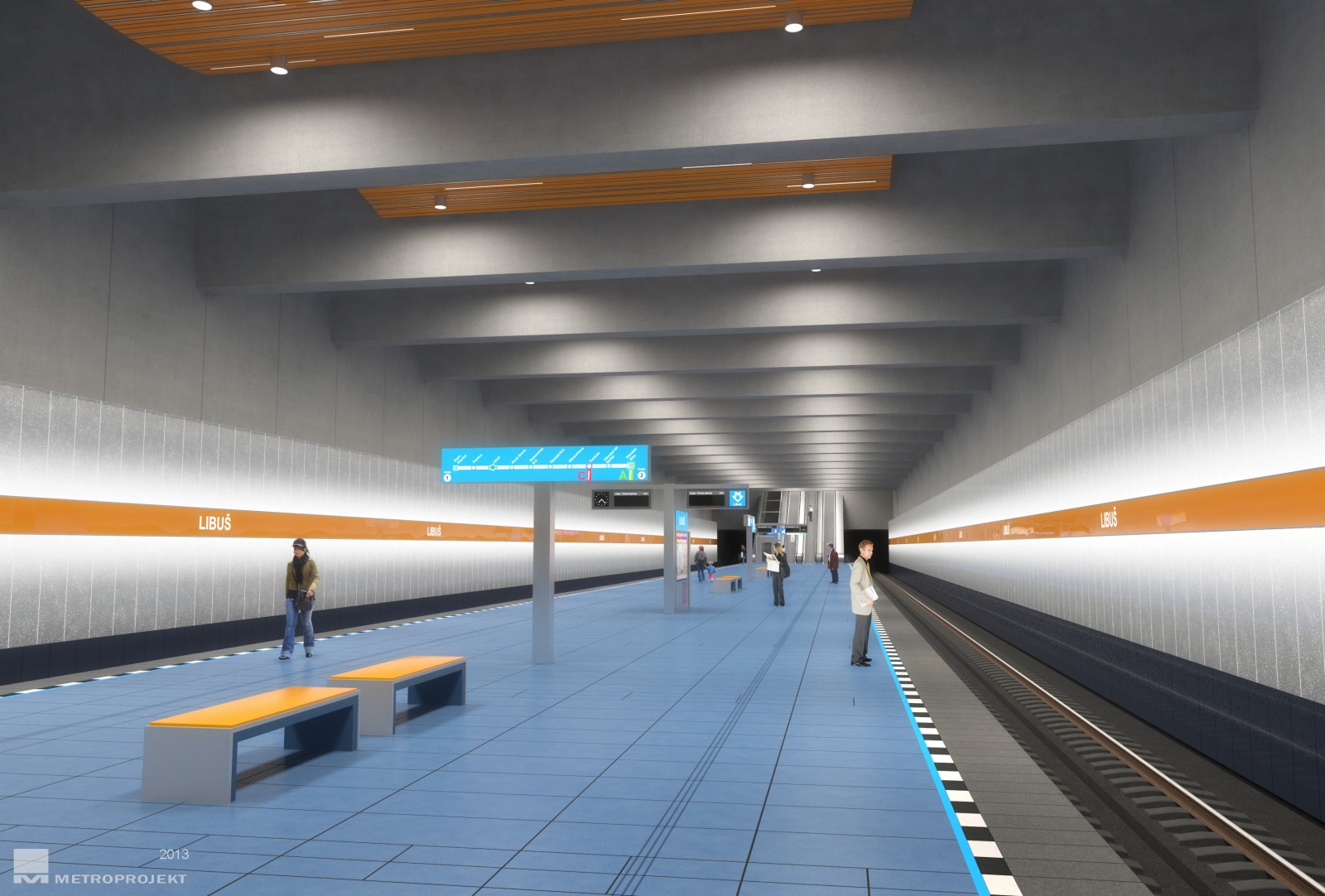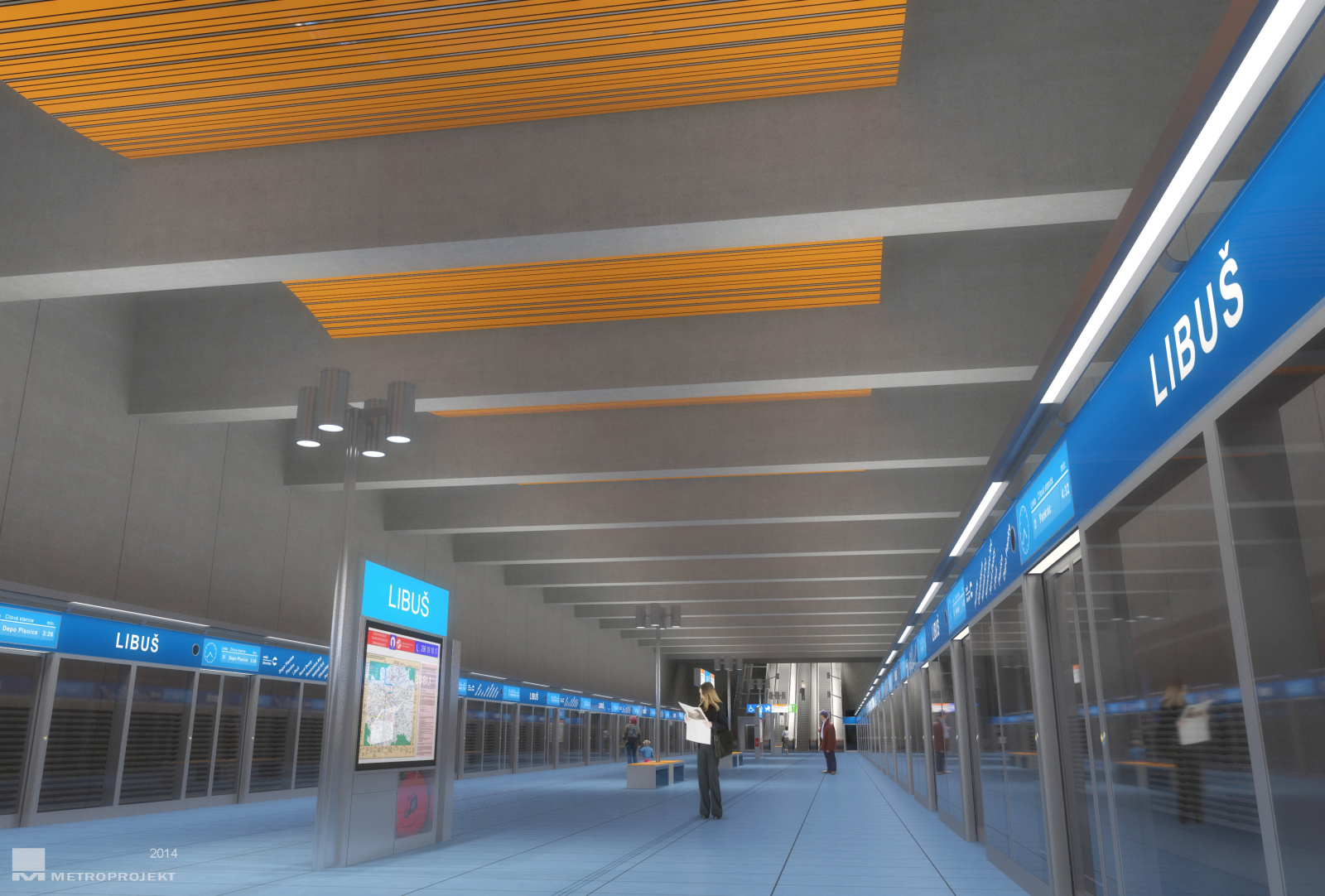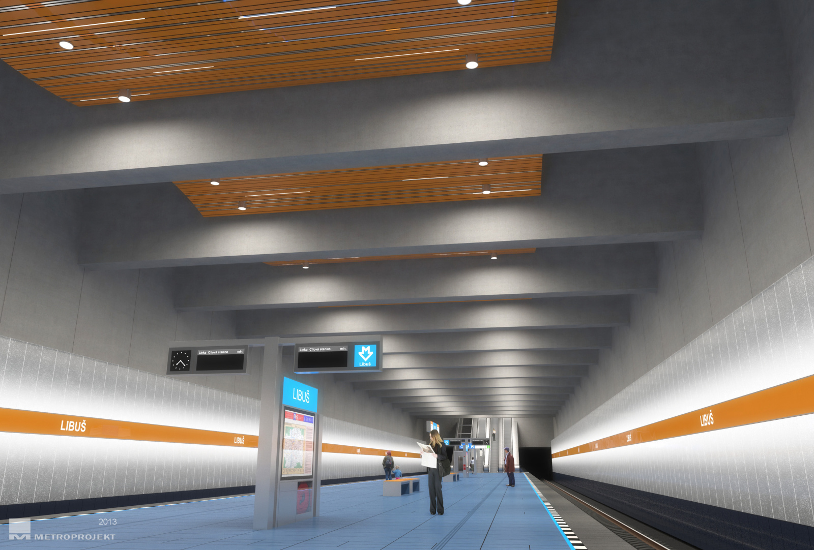 2016 - stanice Libuš - pohled z nástupiště k eskalátorům - varianta