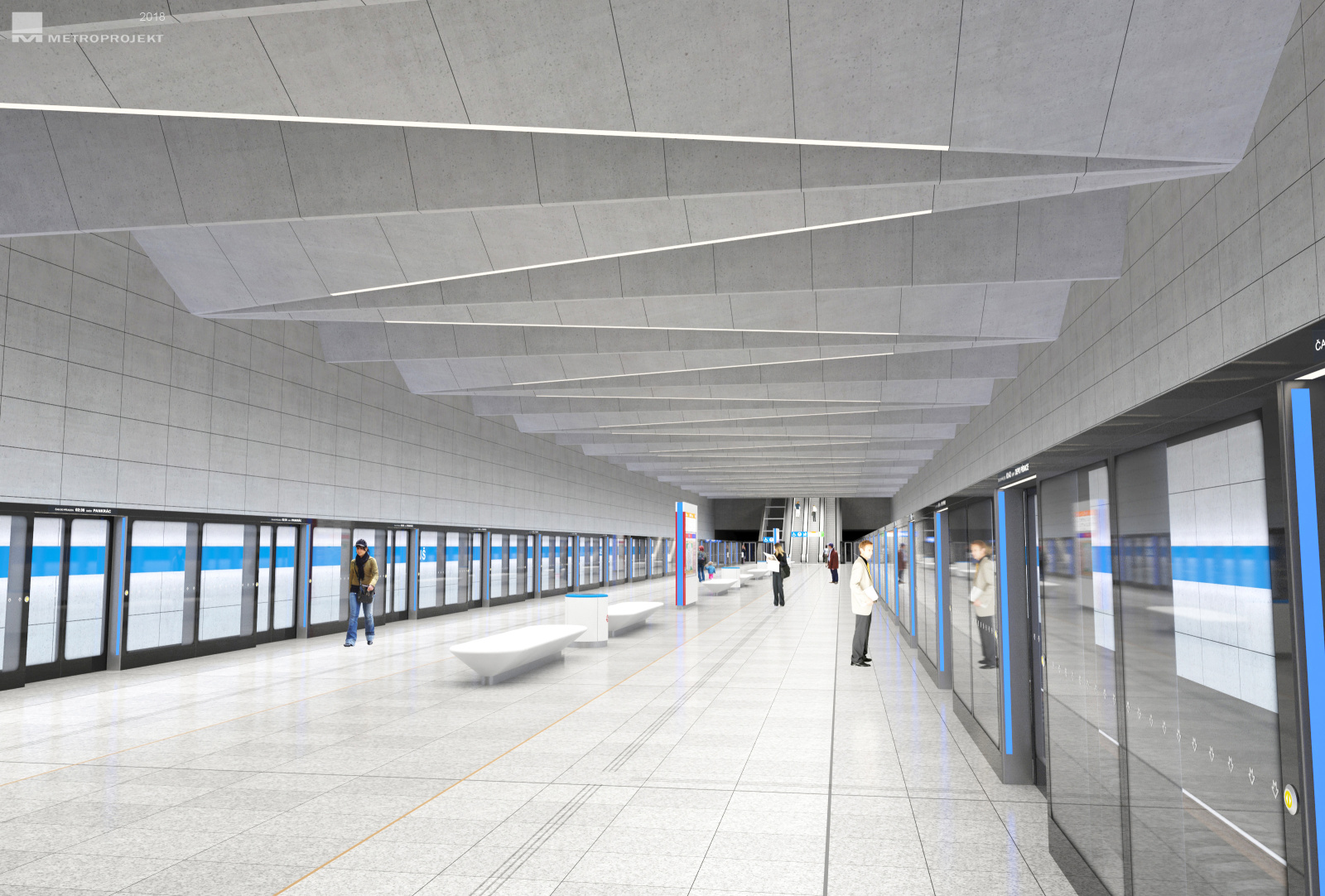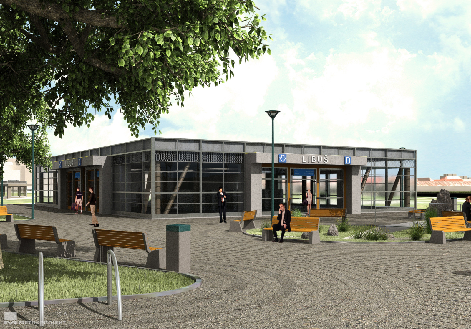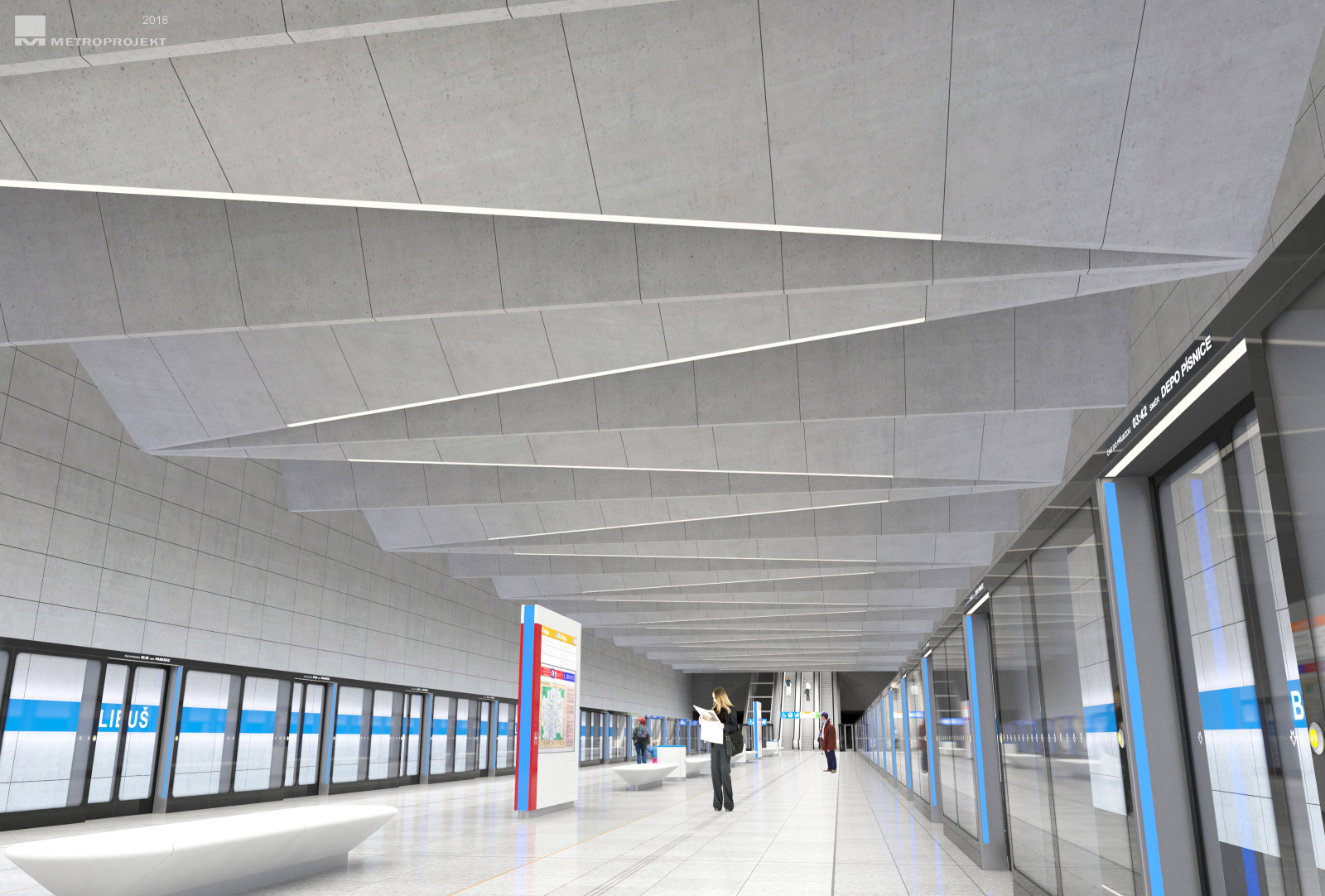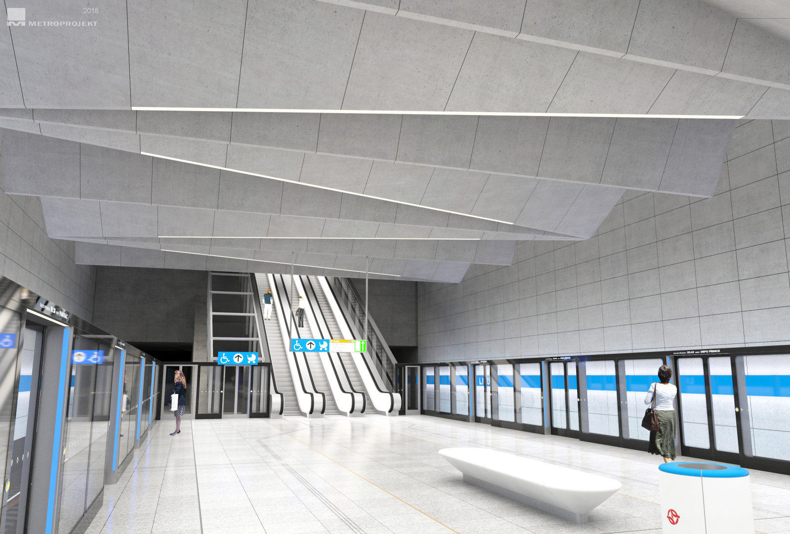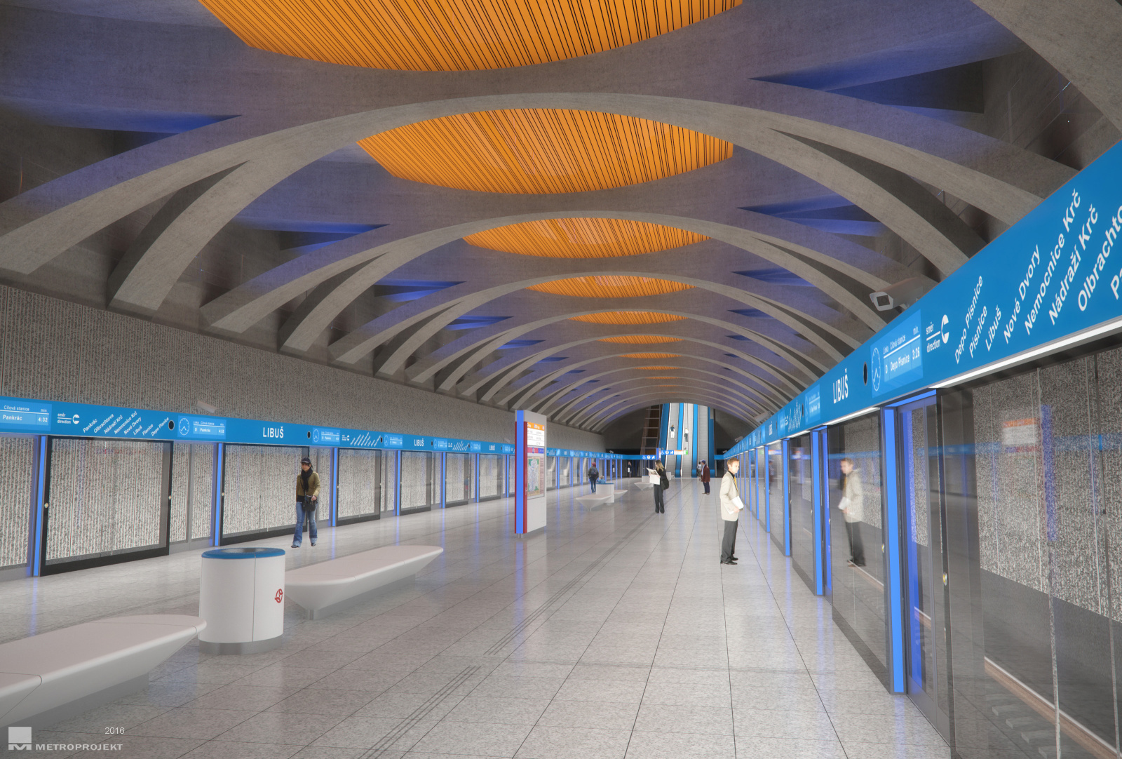 2016 - stanice Libuš - pohled z nástupiště k eskalátorům - varianta