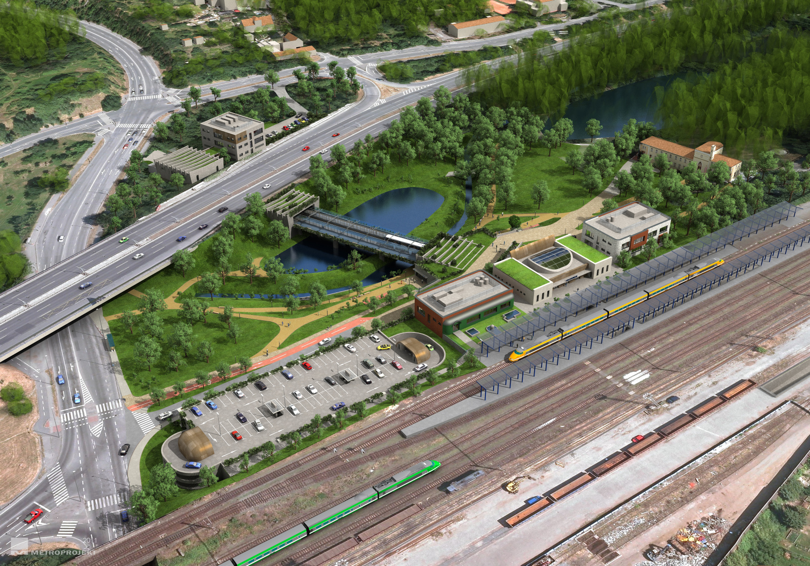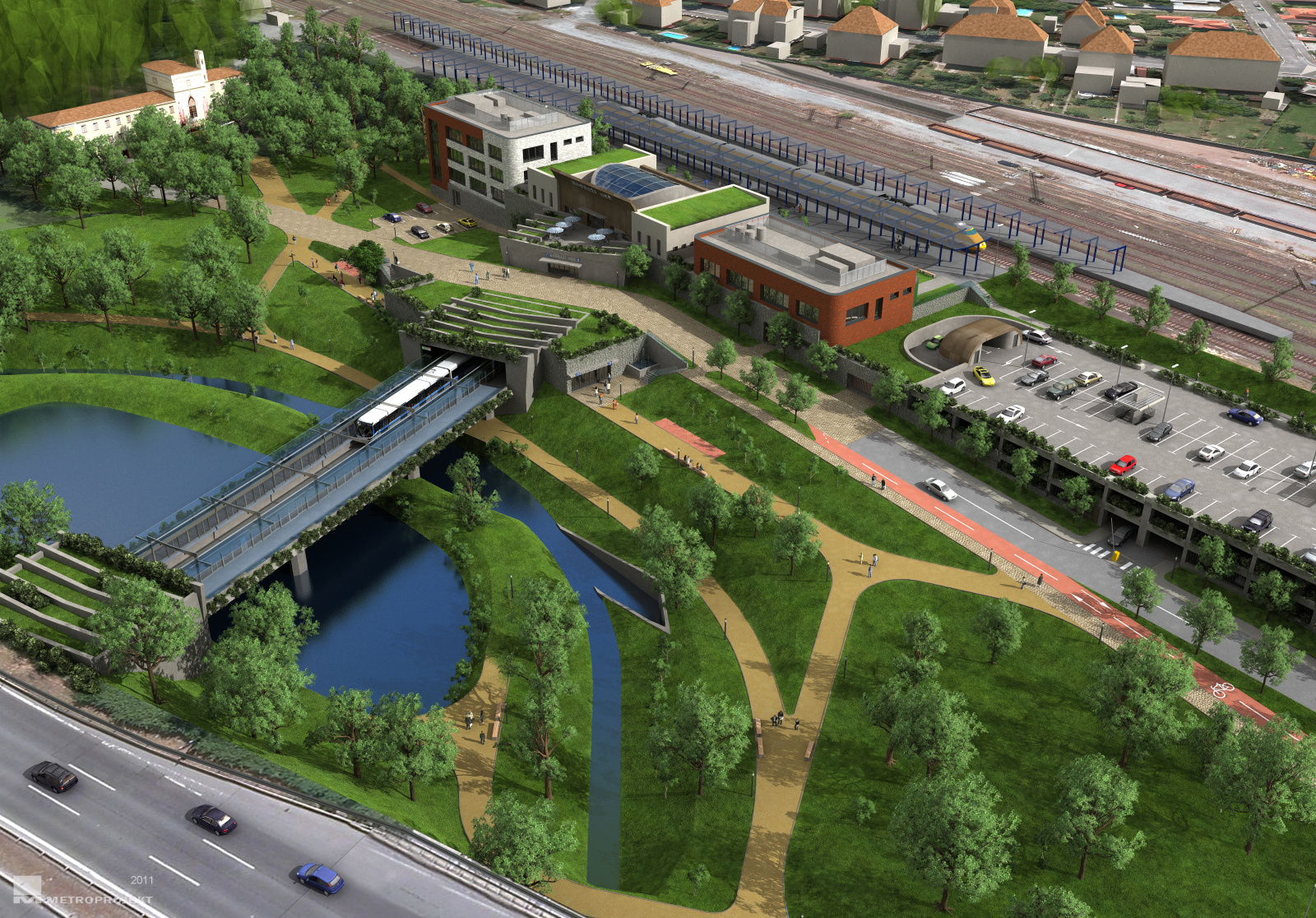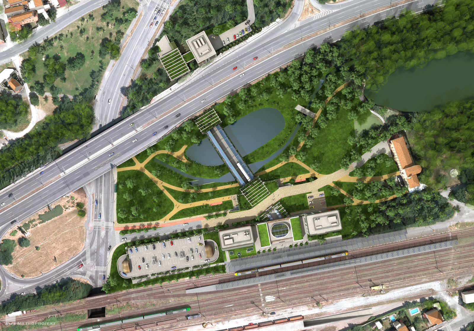 2011 - stanice Nádraží Krč - pohled z ptačí perspektivy - zakrytá nástupiště