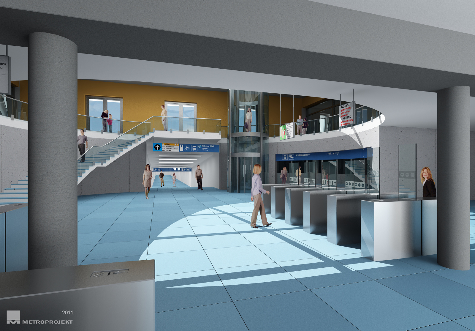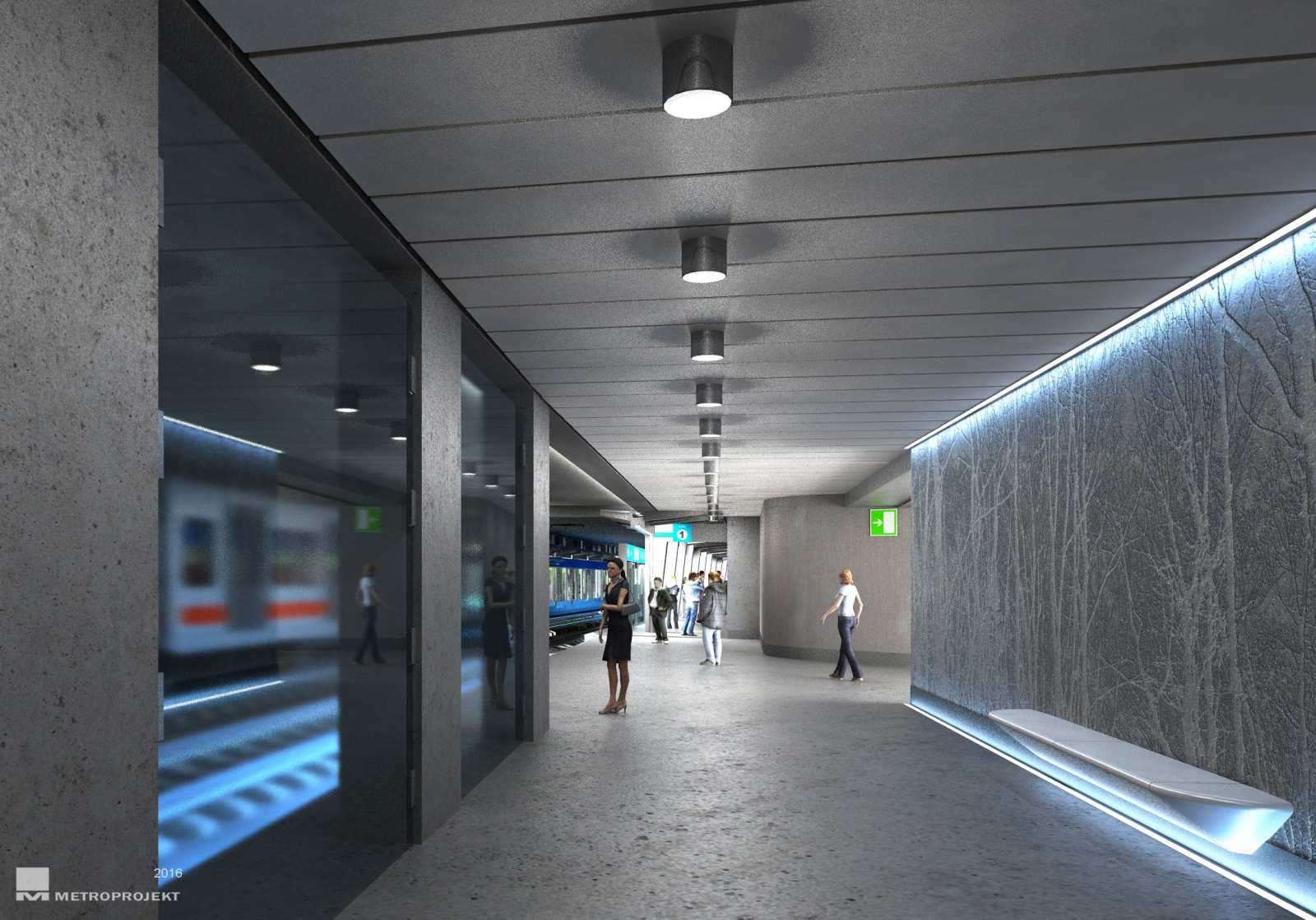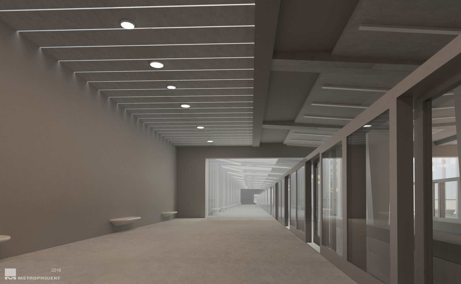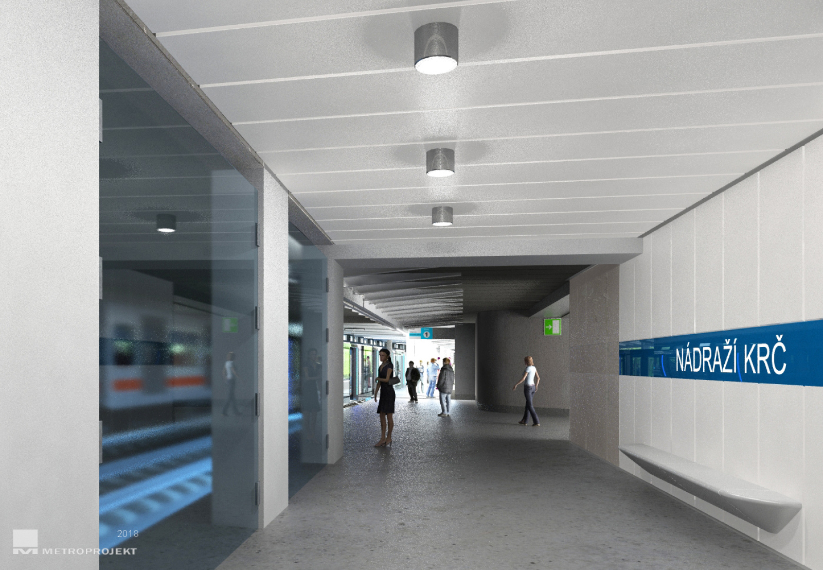 2019 - stanice Nádraží Krč - chodba k nástupišti - pracovní vizualizace