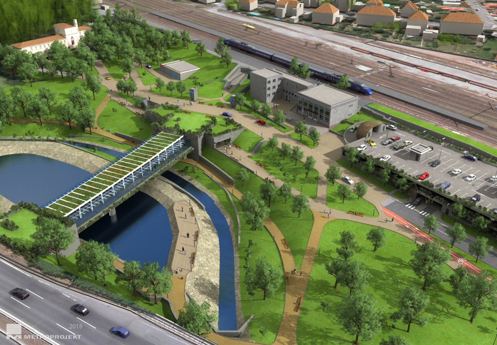 2019 - stanice Nádraží Krč - lávka na mostě - pracovní vizualizace
