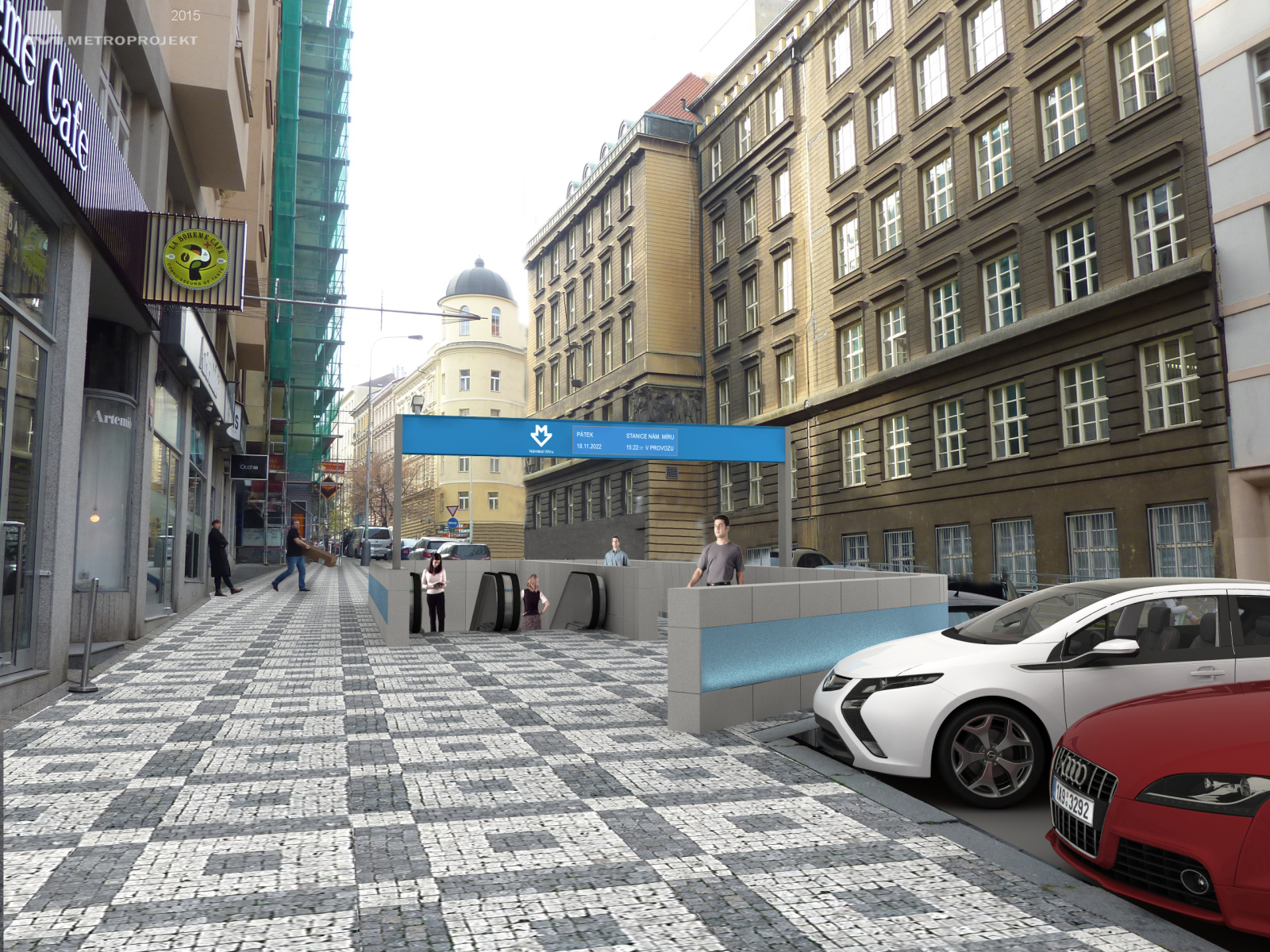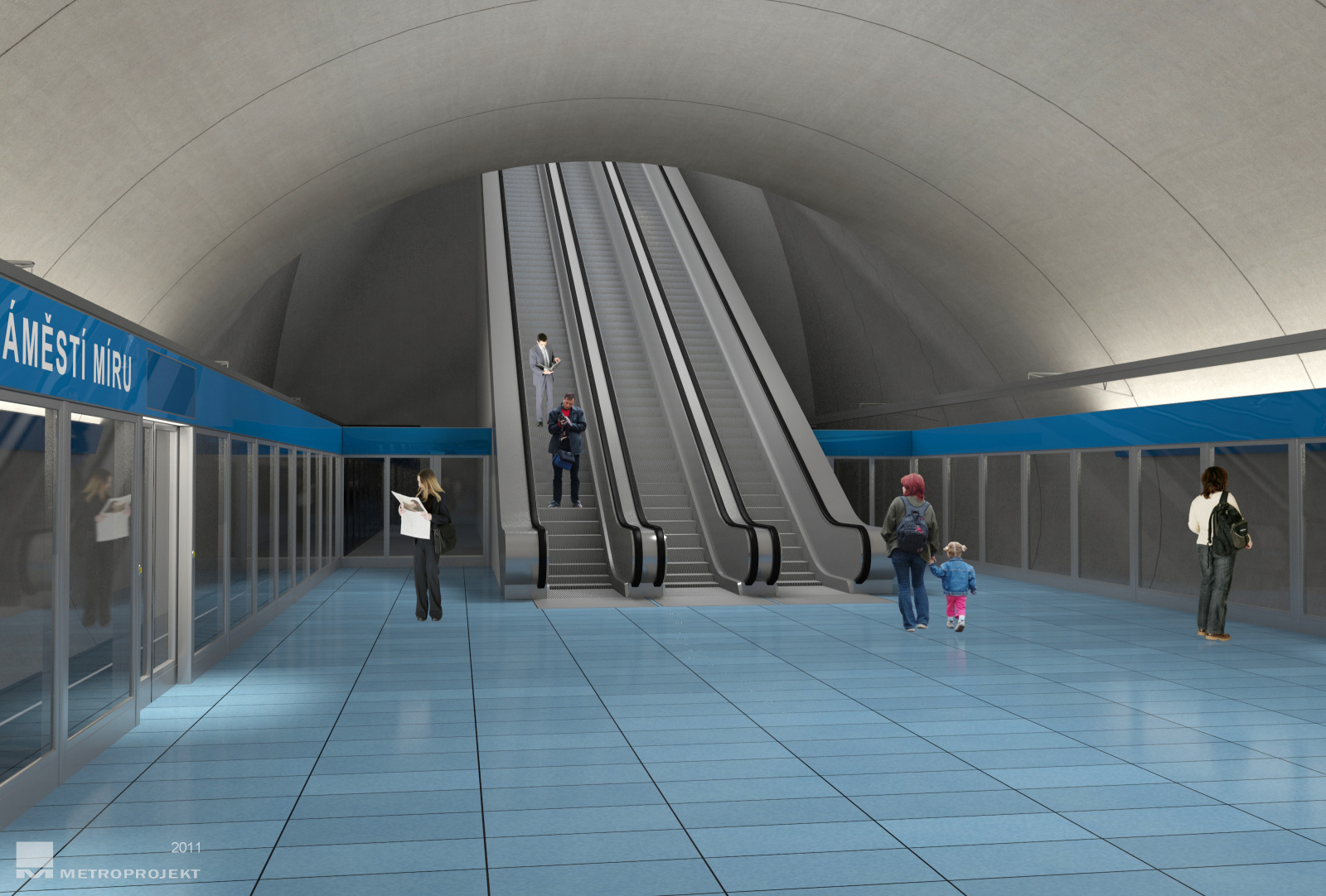 2015 - stanice Náměstí Míru - výstup ze stanice do ulice Sázavská