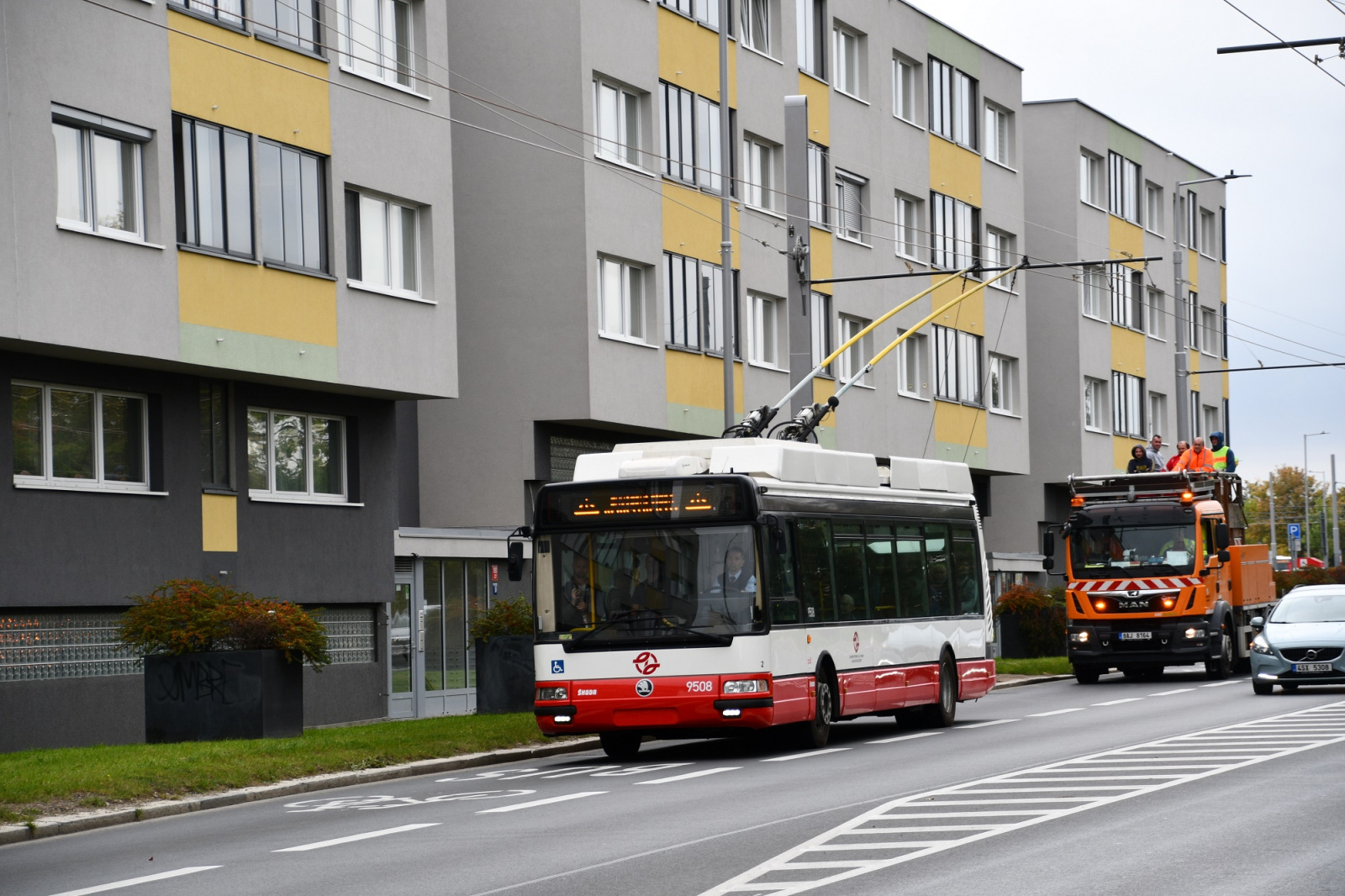 Zkušební provoz v úseku Letňany–Čakovice bude DPP realizovat zatím pouze o víkendech trolejbusem Škoda 30 Tr ev. č. 9506 zapůjčeným z Dopravního podniku města Hradce Králové. Zajímavostí je, že tohle vozidlo v nedávné minulosti v Praze už působilo, DPP jej testoval od května 2018 do listopadu 2019 v rámci pilotního provozu v Prosecké ulici.