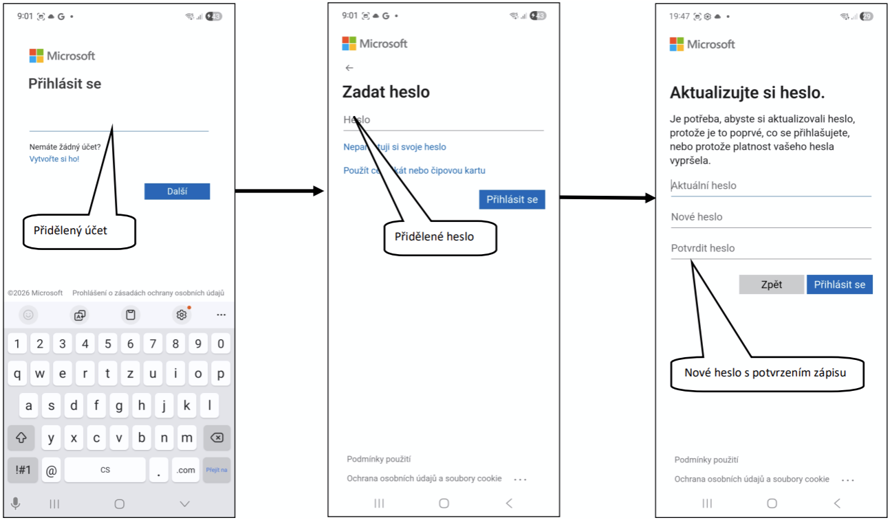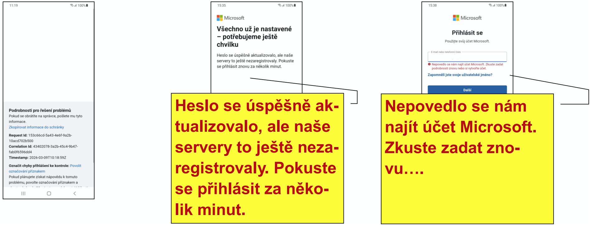 Aktualizace nového hesla může systém zpracovat až po minutách. Čas závisí na vytížení služeb společnosti Microsoft. Zadejte silné heslo. Vaše nové heslo bude dovoleno si samostatně změnit vždy 1x za 24h.