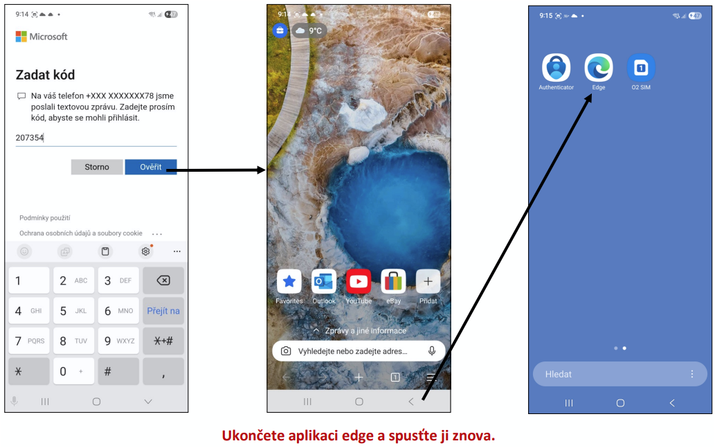 Authenticator odinstalujte, nainstalujte Microsoft Authenticator a pokračujte od nového spuštění aplikace Microsoft EDGE