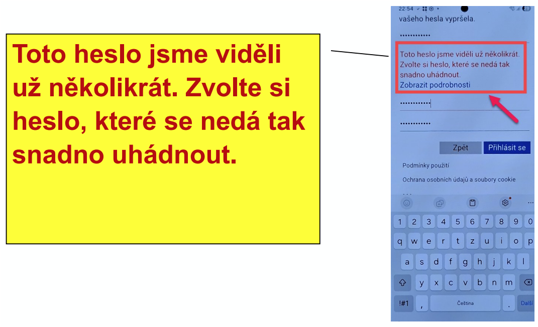 Zadané heslo je slabé—Microsoft vyhodnotil nedostatečnou sílu této kombinace znaků