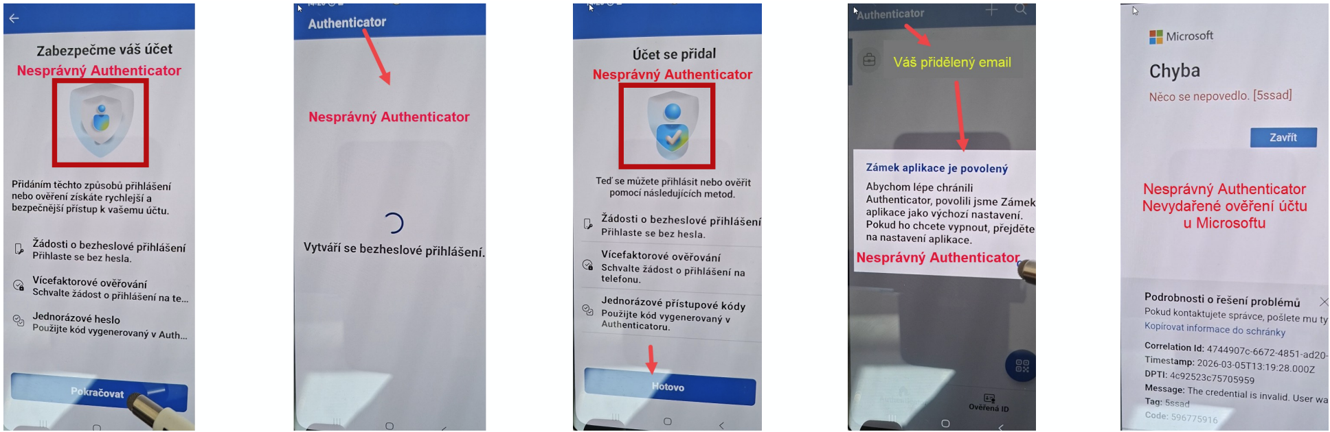 Zachycené chyby spojené se špatným Authenticatorem