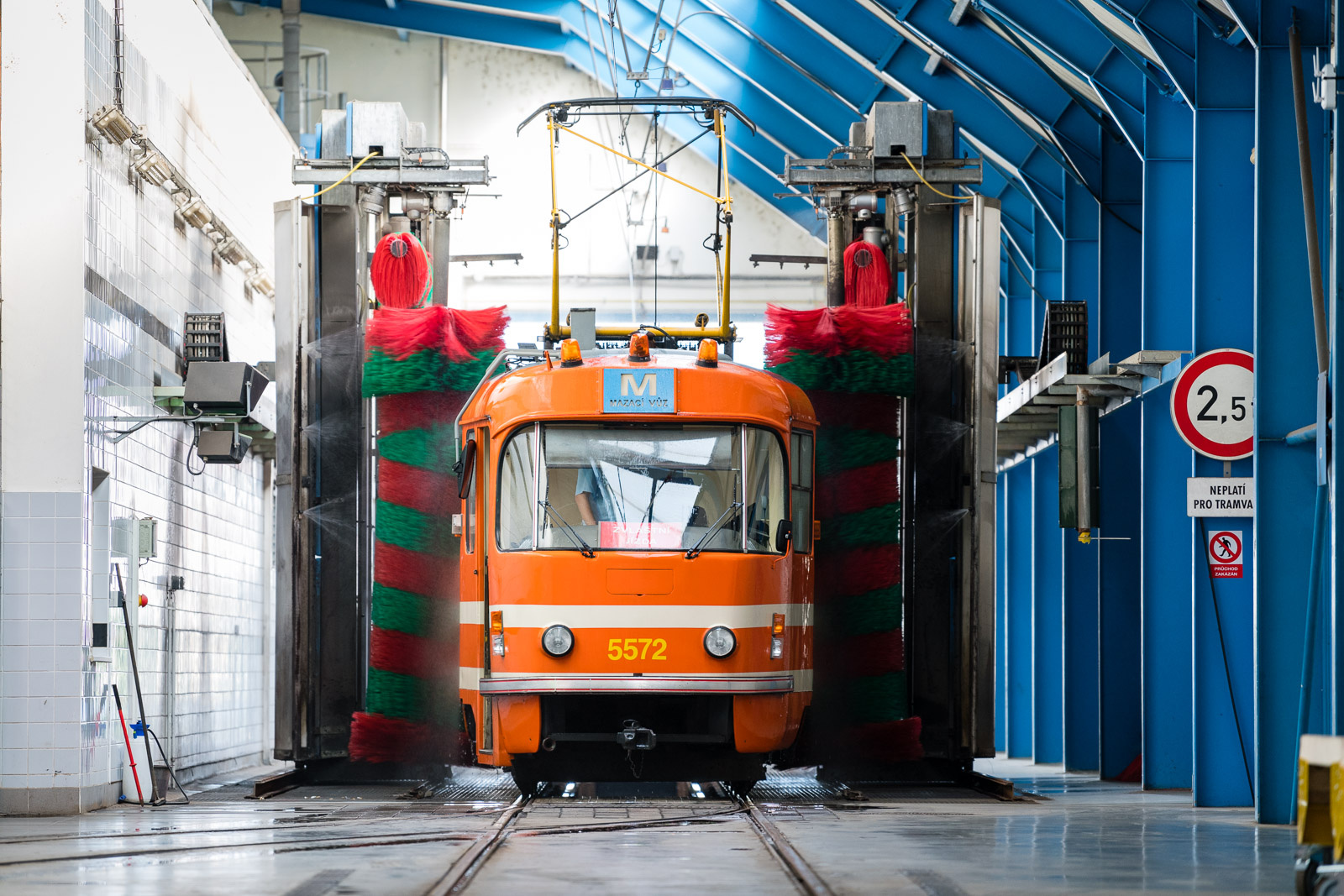 Rekonstruovaná mazačka byla slavnostně představena v tramvajové smyčce na Těšnově v pondělí 19. prosince 2016.